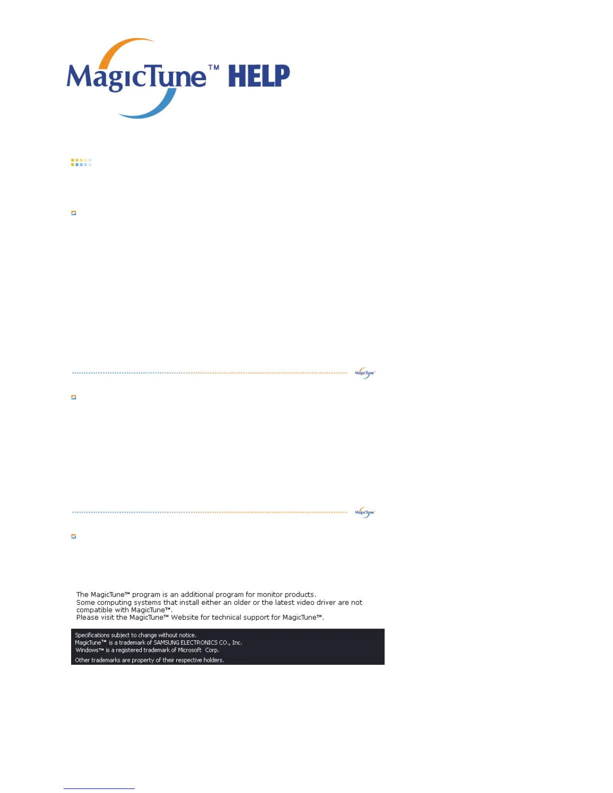 correctly setting the controls of the monitor. MagicTune is a software utility that guides you through the tuning
