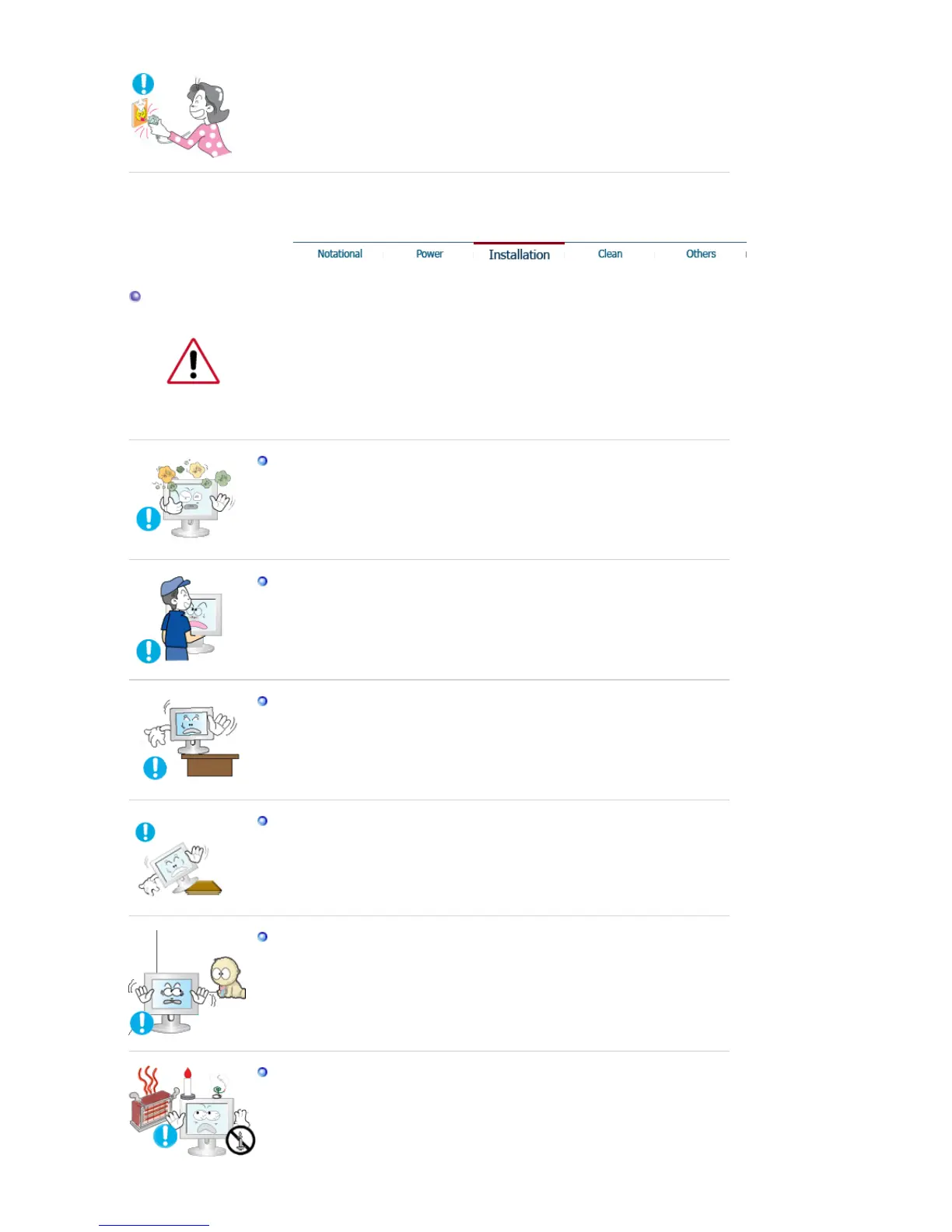 Be sure to contact an authorized Service Center, when installing your monitor in
