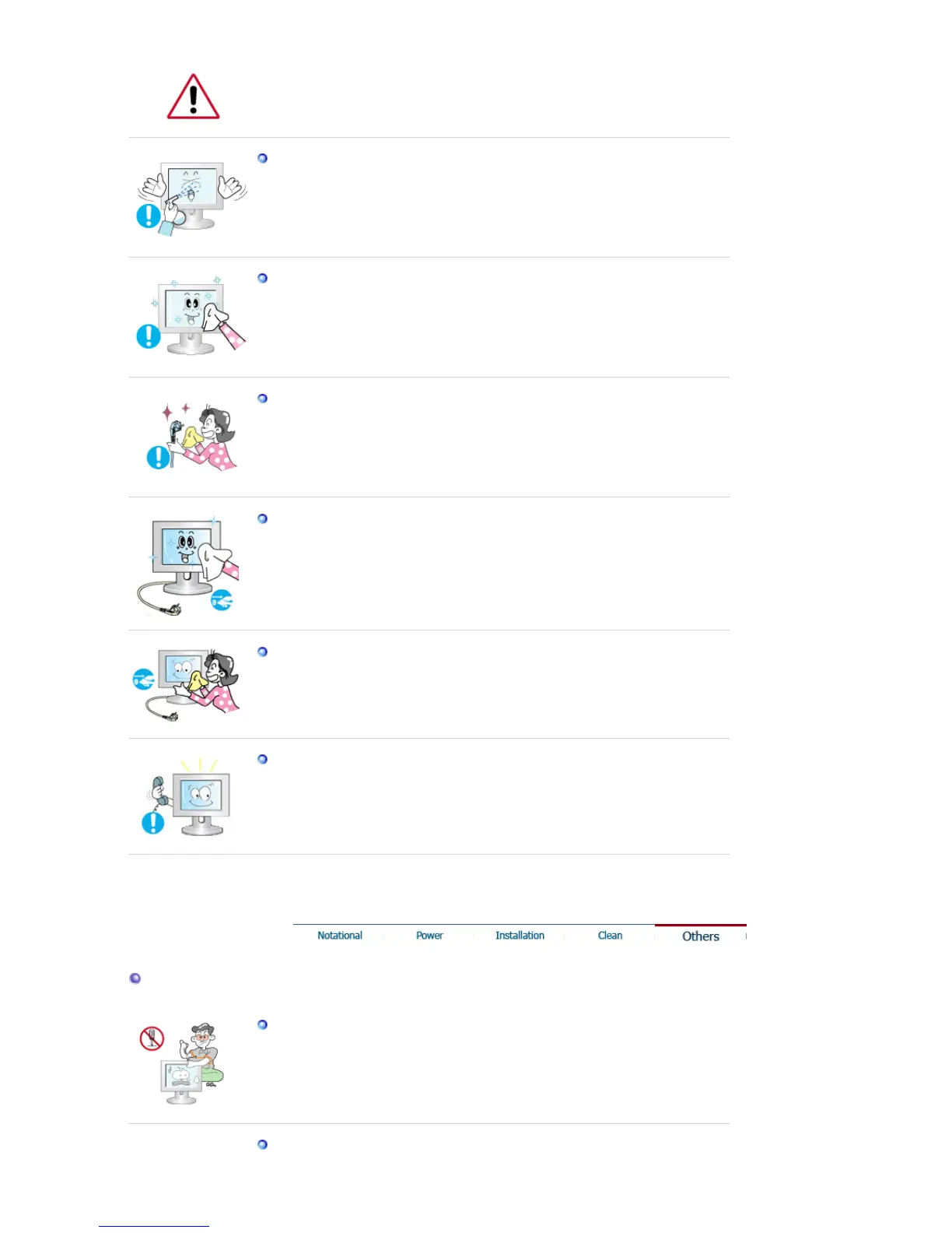 Do not spray water or detergent directly onto the monitor.