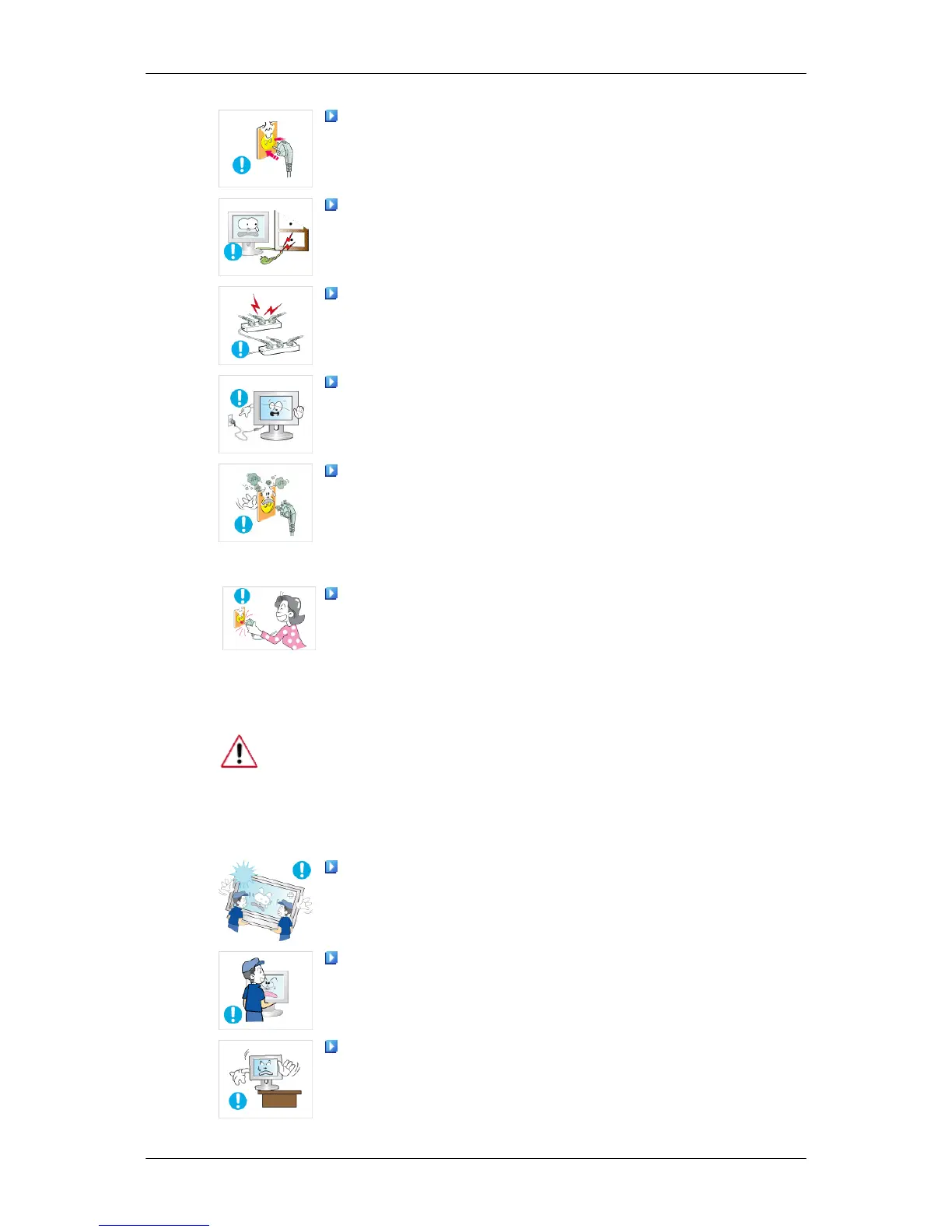• Failure to do so may cause electric shock or fire inside the monitor.
