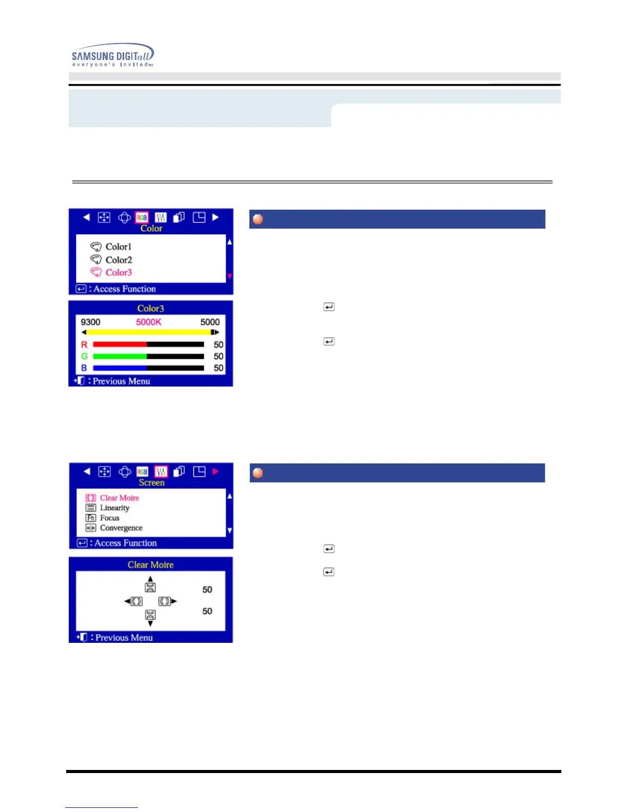 3 Push the Menu( ) button to open the Clear Moire adjustment screen.