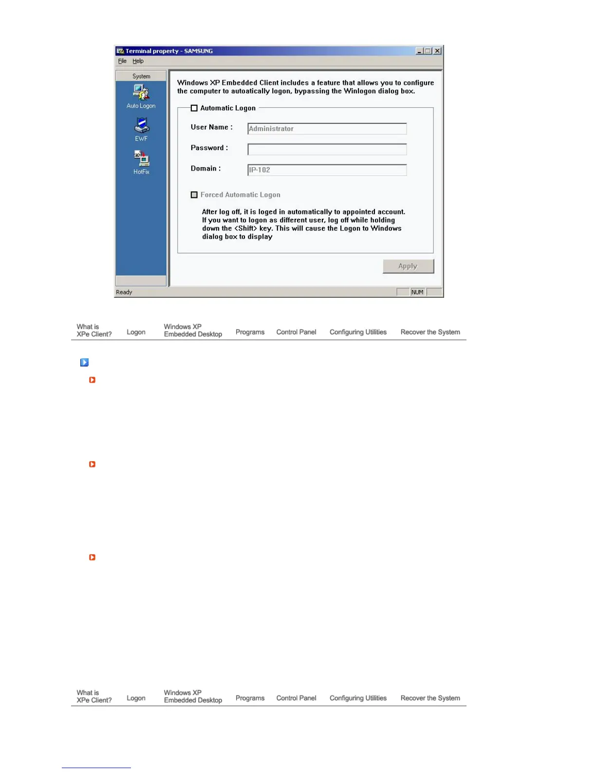 loggin in again.) For more information on the Enhanced Write Filter, refer to the Program Help .