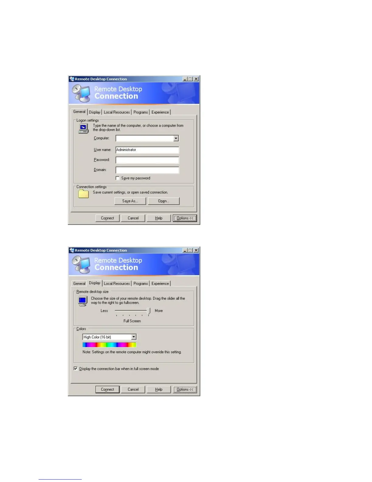 - Display: The Remote Desktop Connection sends and receives compressed screen data. If you set