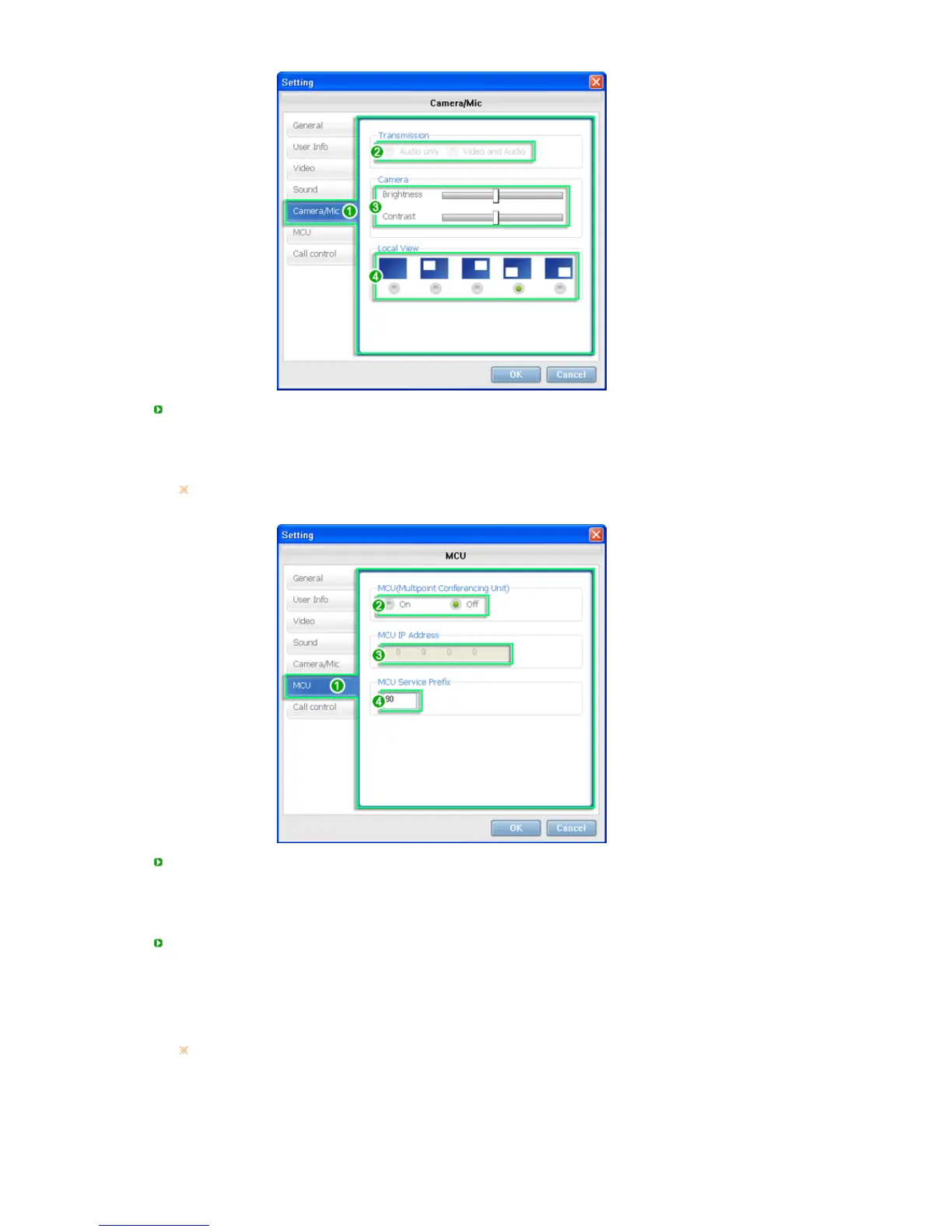 (For the MCU IP Address and MCU Service Prefix, ask your administrator for this