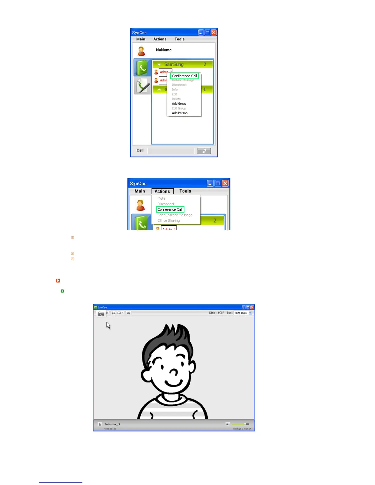 with the mouse and selecting [Actions] > [Conference Call] from the pop-up menu that appears