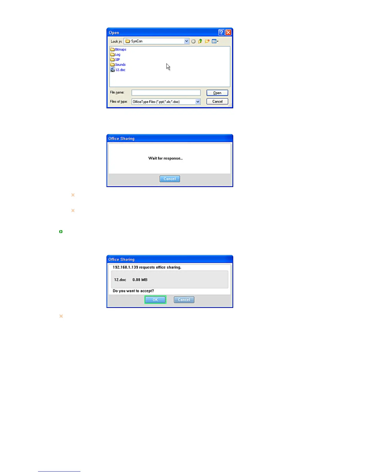 accepts sharing the office file. If you click Cancel, sharing the office file is cancelled.