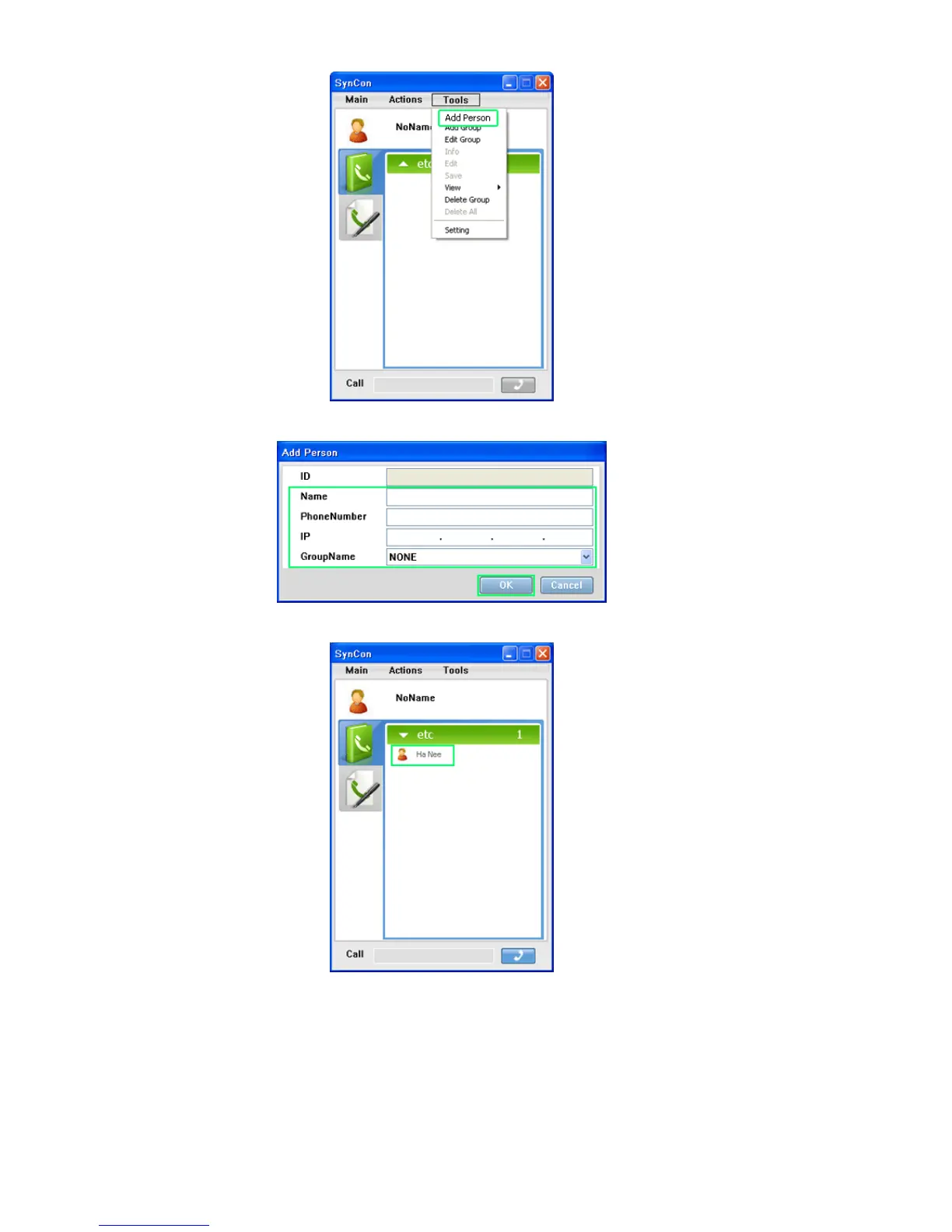 2. In the Add Person window, enter the information for the person you wish to call and click OK.