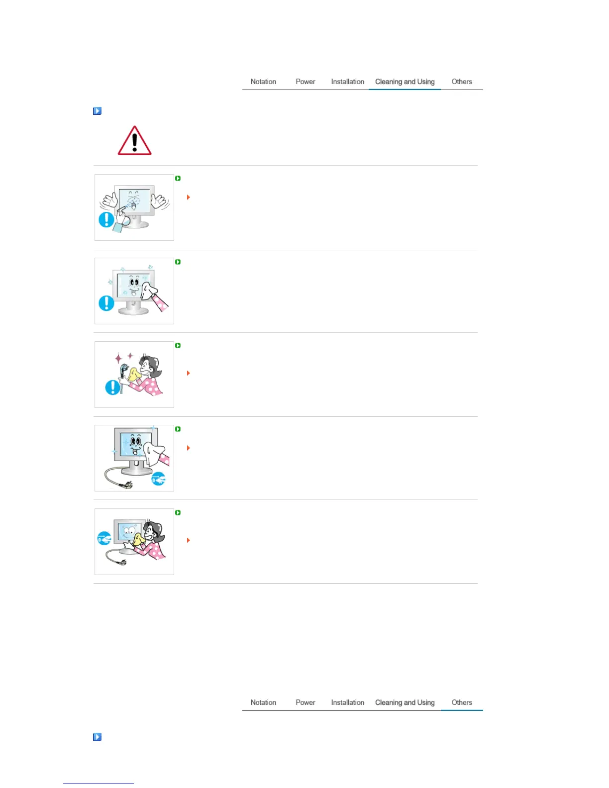 When cleaning the monitor case or the surface of the TFT-LCD screen, wipe with a
