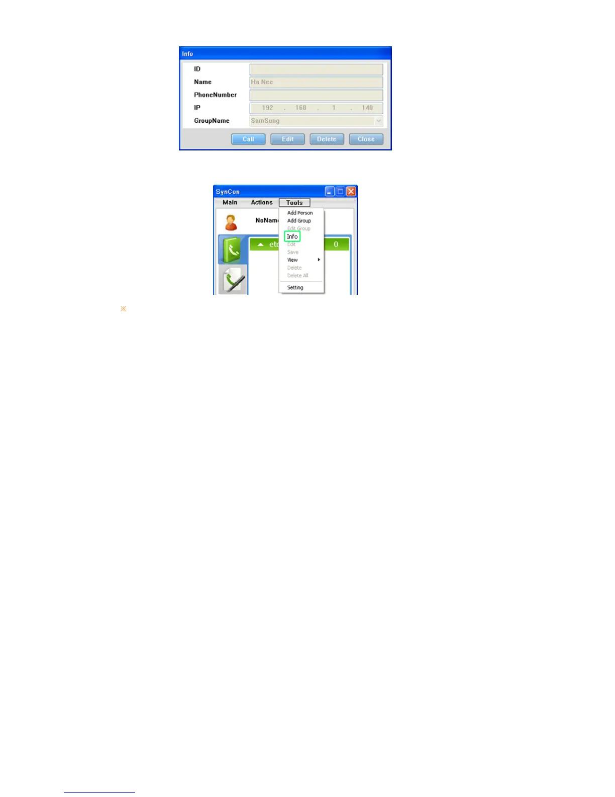 You can view the information for a person by clicking on that entry and selecting Info from the