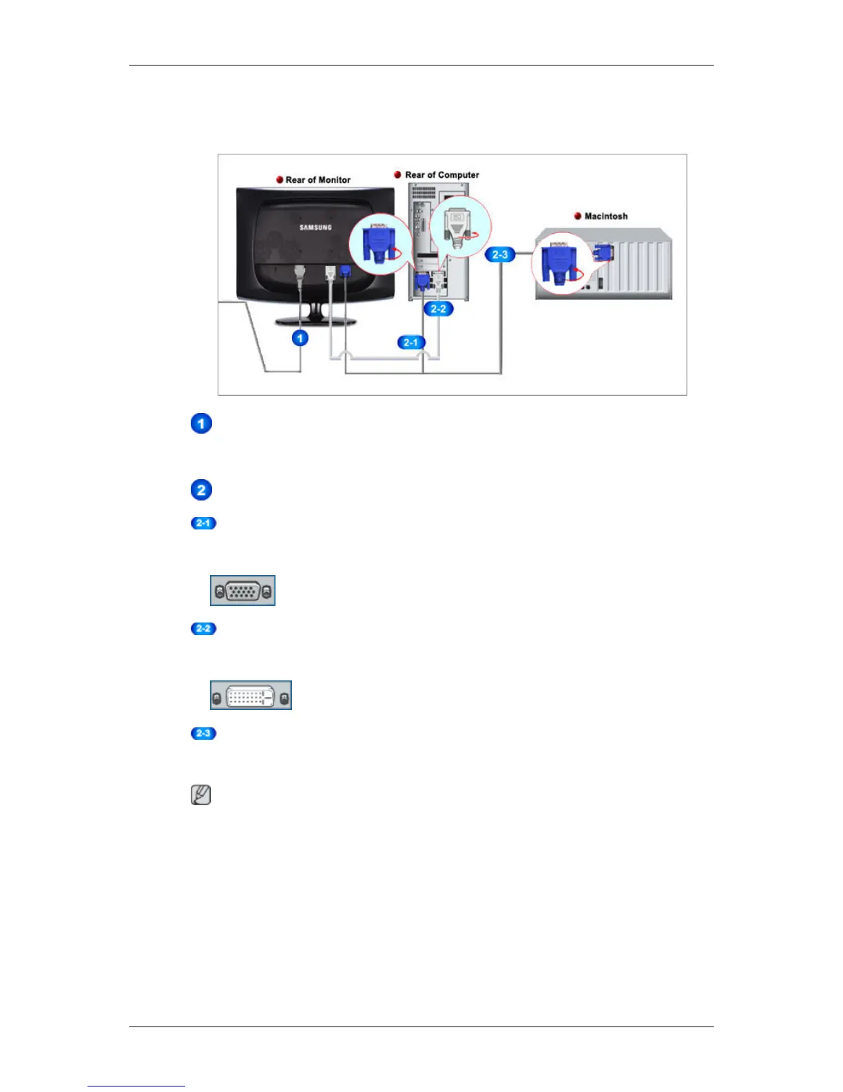 Connect the monitor to the Macintosh computer using the D-sub connection cable.