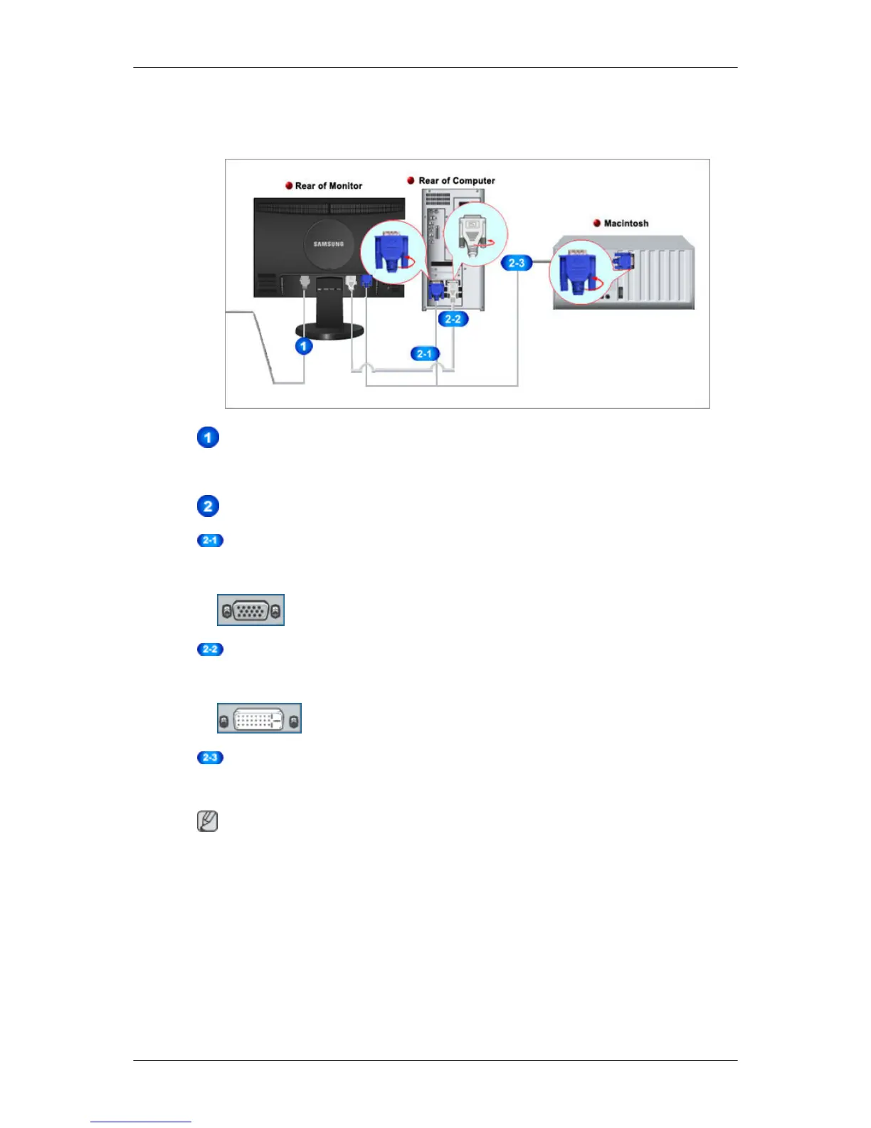 Connect the monitor to the Macintosh computer using the D-sub connection cable.