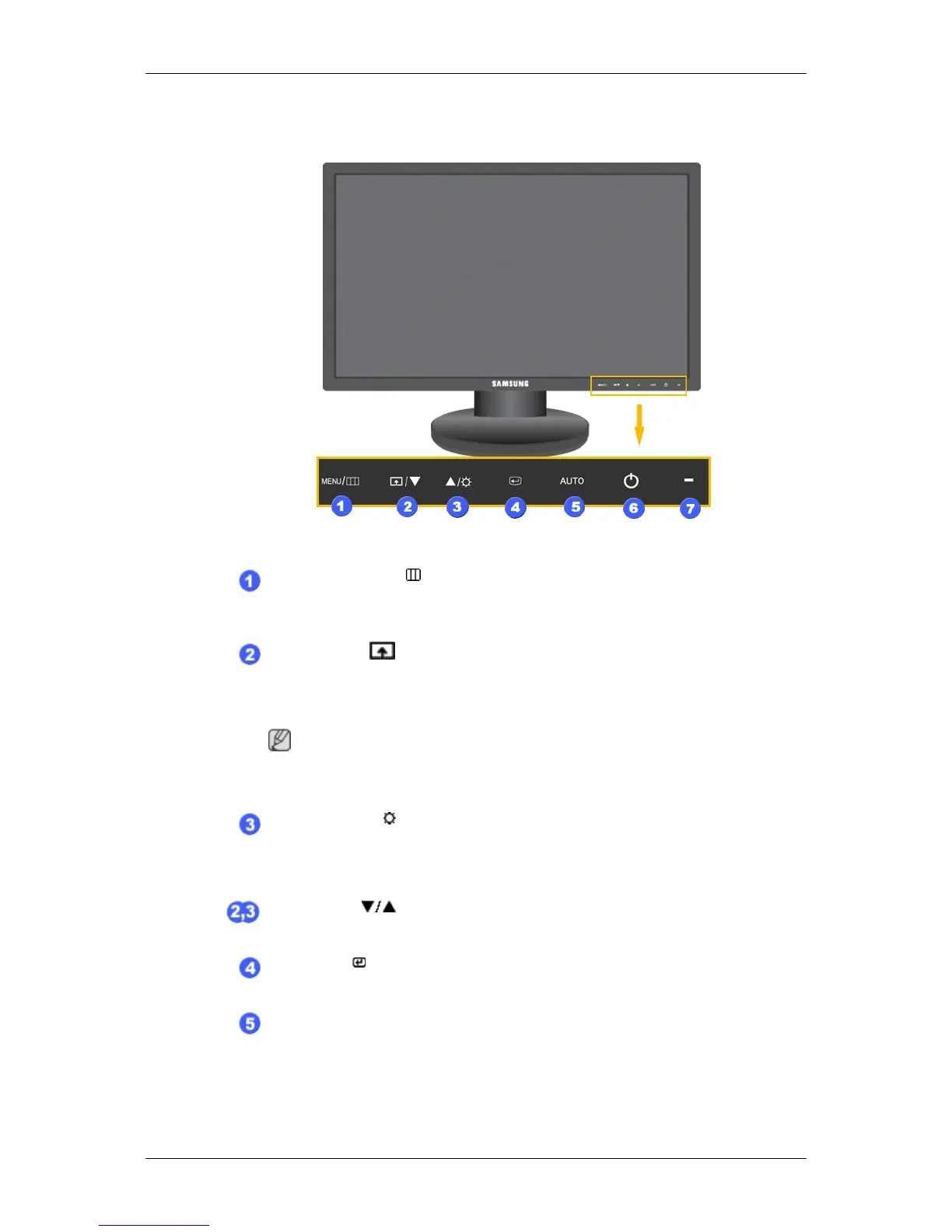 When OSD is not on the screen, push the button to adjust brightness.