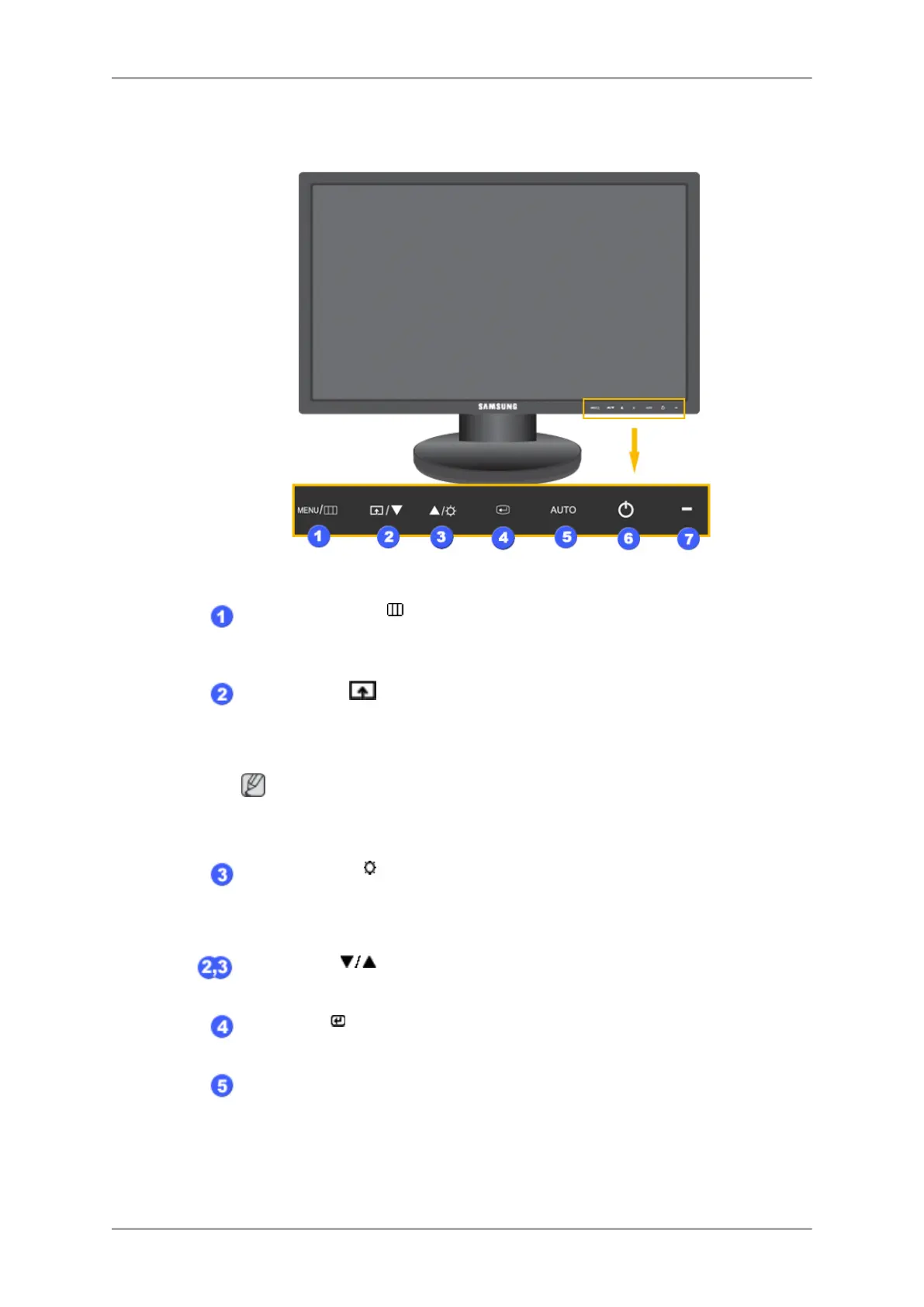 When OSD is not on the screen, push the button to adjust brightness.