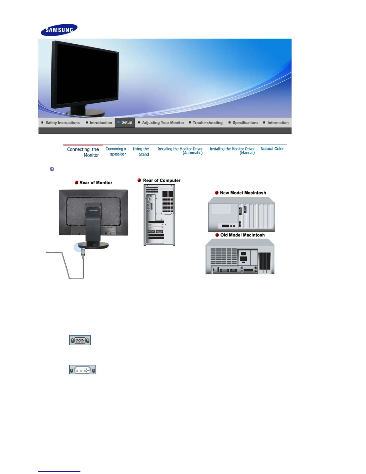 Connect the monitor to the Macintosh computer using the D-sub connection cable.