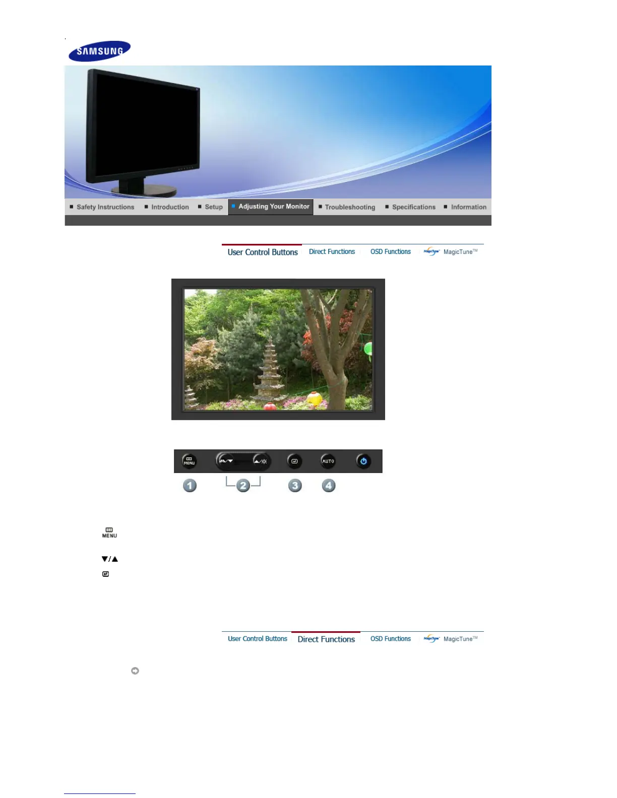 [ ]Use this button to open the on-screen menu and exit from the menu screen or close screen