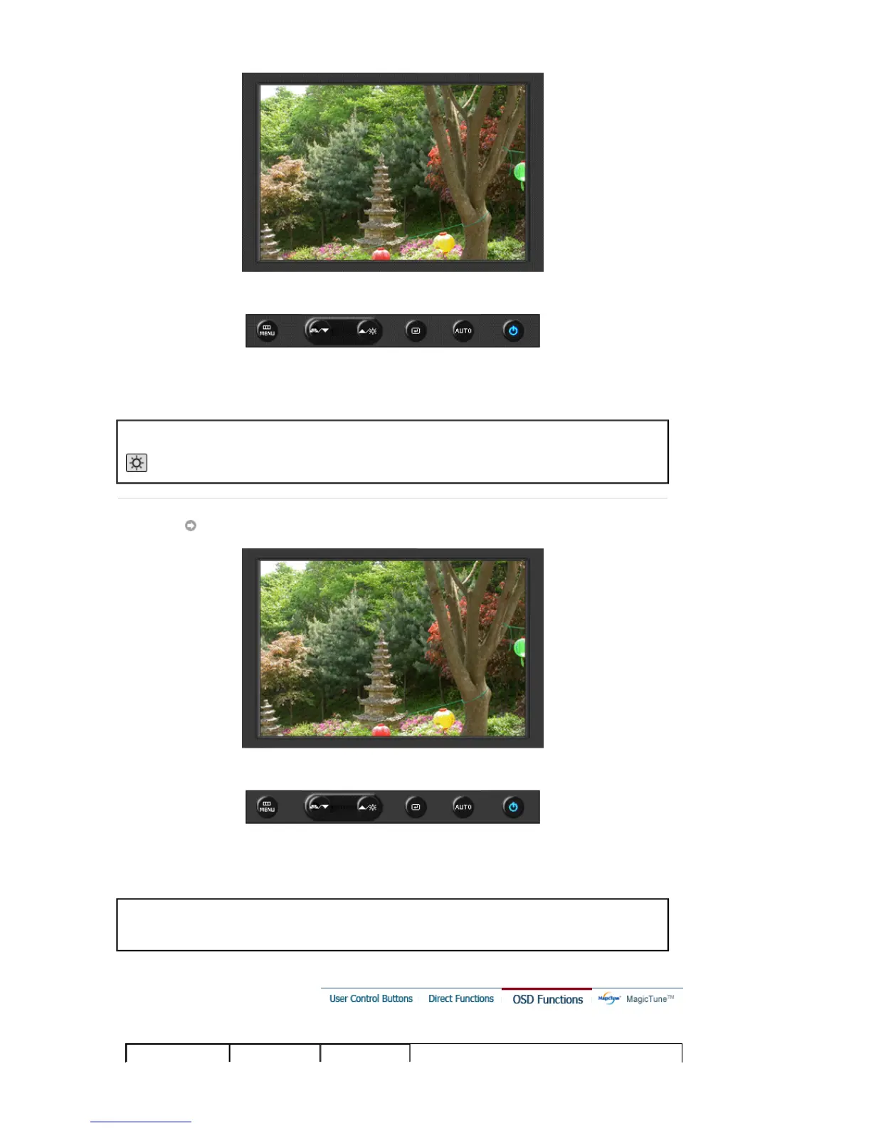 When OSD is not on the screen, push the button to adjust brightness.