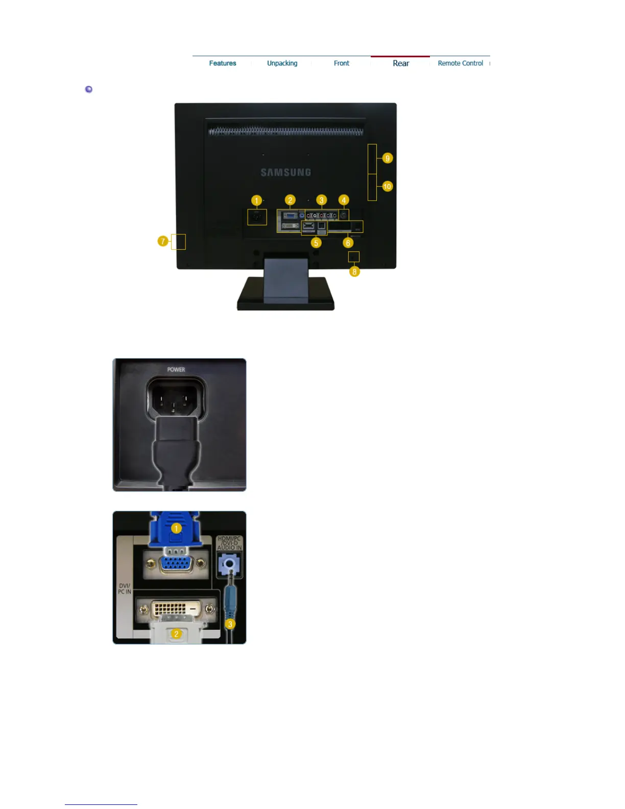 (The configuration at the back of the monitor may vary from product to product.)