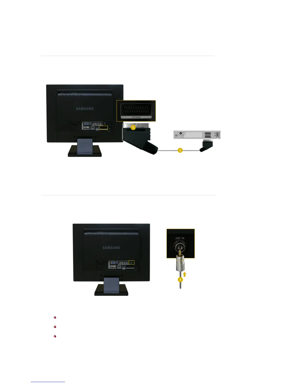 1. Connect the CATV cable or TV antenna cable to the "ANT IN" port on the rear side of the monitor.