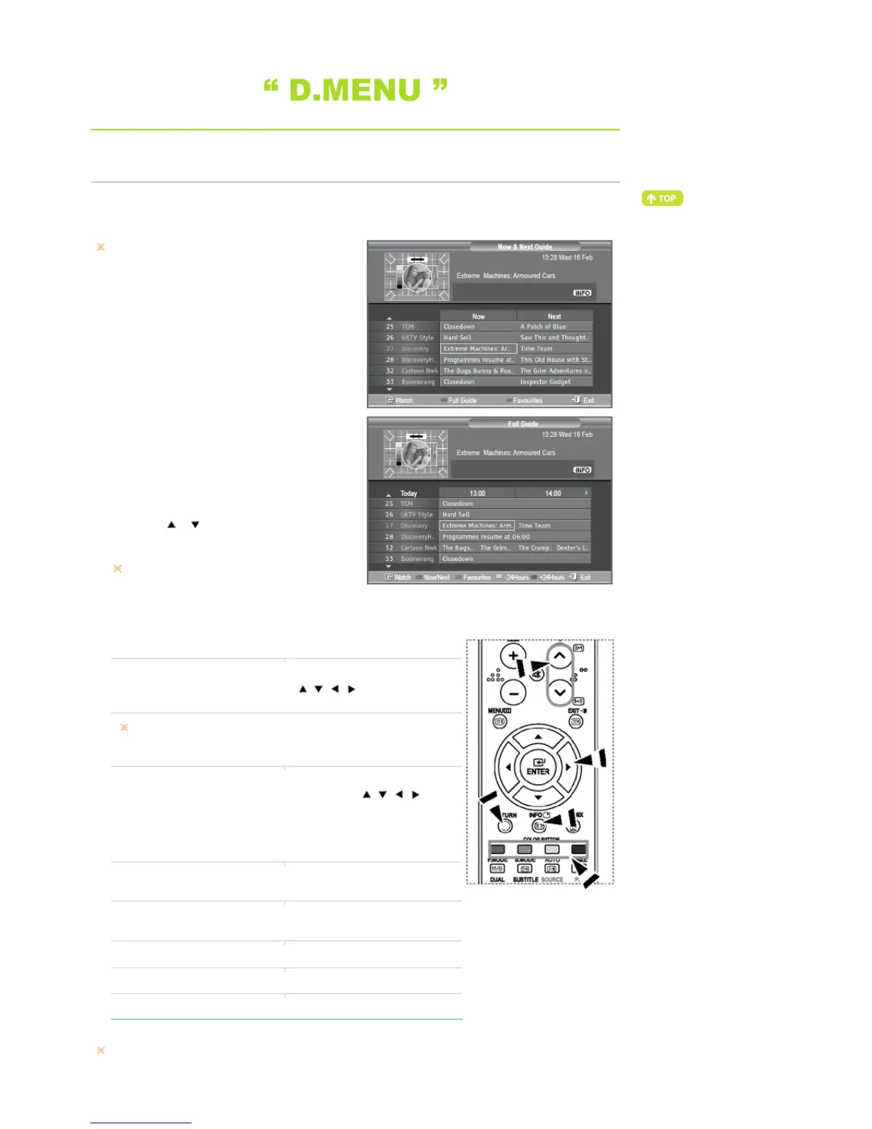 1. Press the D.MENU button to display the DTV menu.