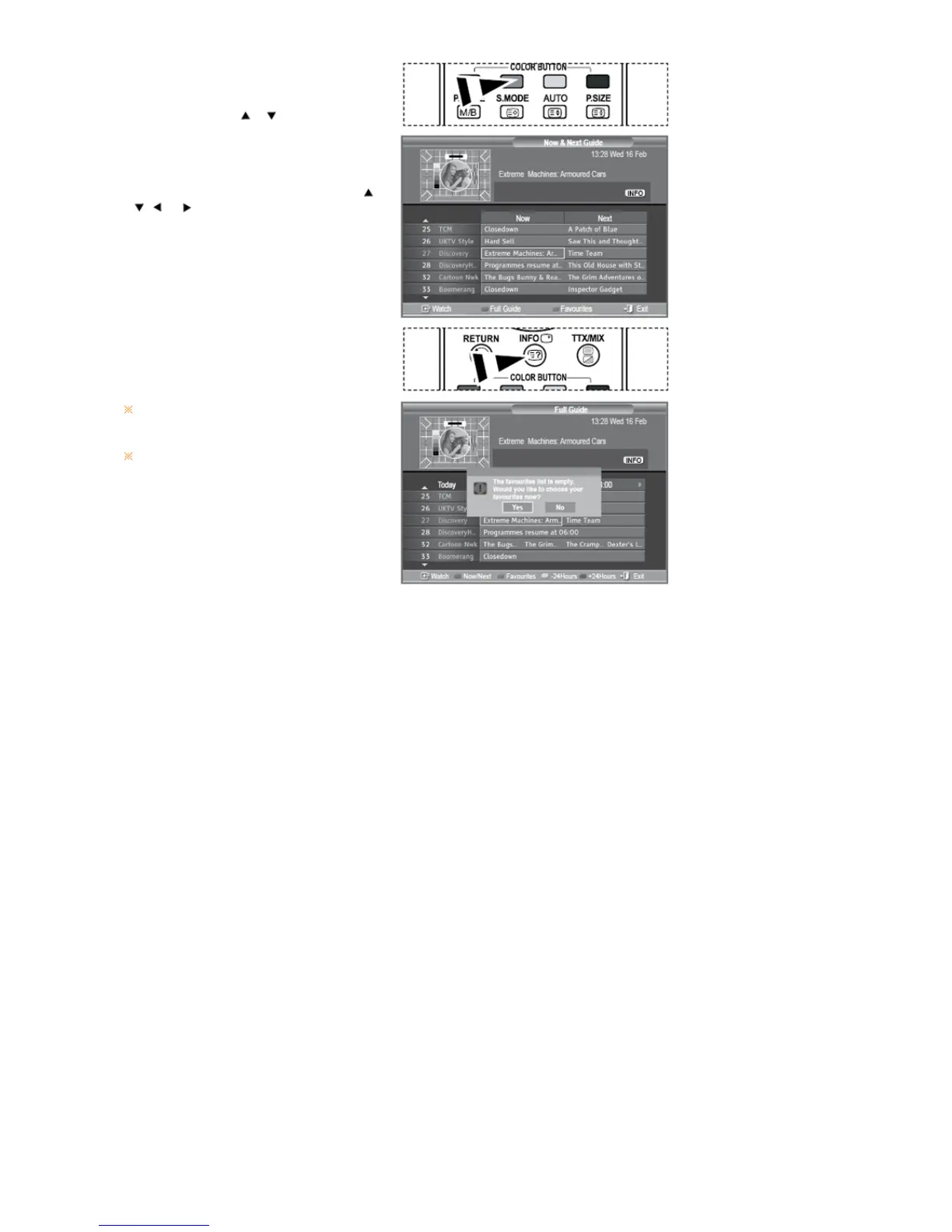 8. When the Edit Favourite Channels list has not been set up:
