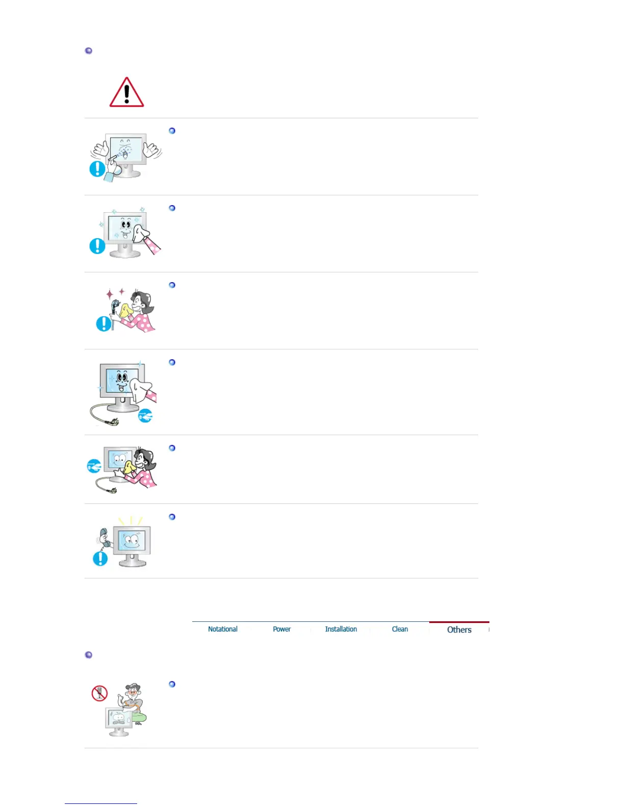When cleaning the monitor case or the surface of the TFT-LCD screen, wipe with a