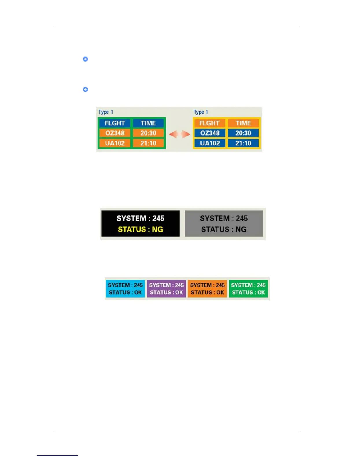 • Recommended settings: Bright colors with little difference in luminance