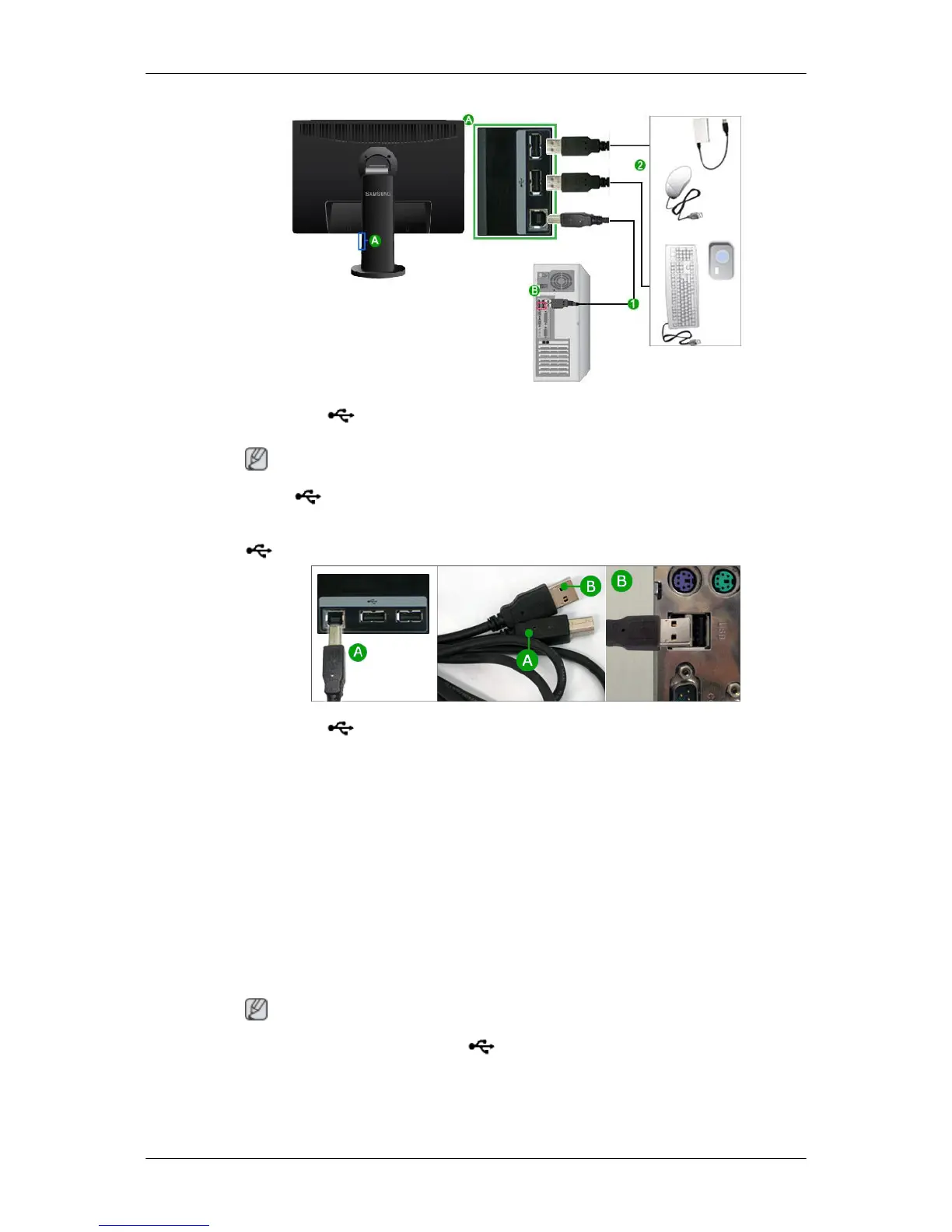 DOWN port of the USB monitor and a USB device with the USB cable.