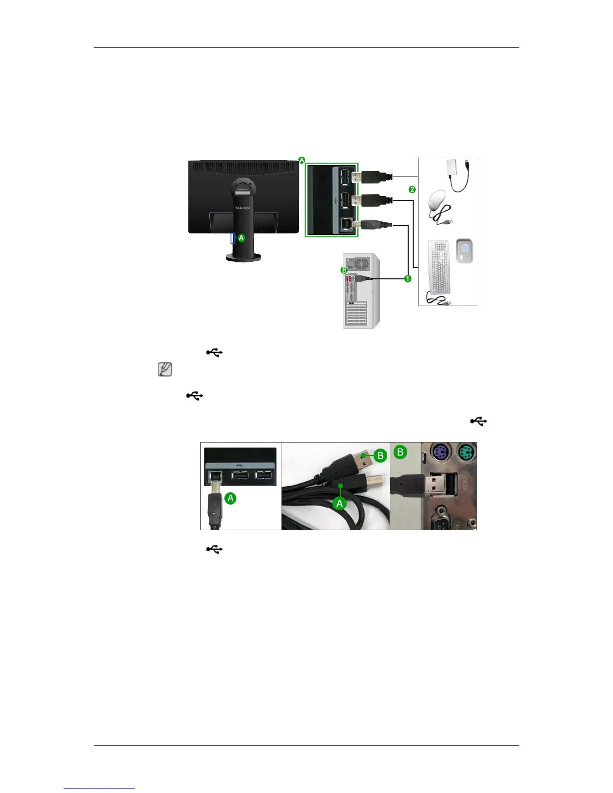 Connect the DOWN port of the USB monitor and a USB device with the USB cable.