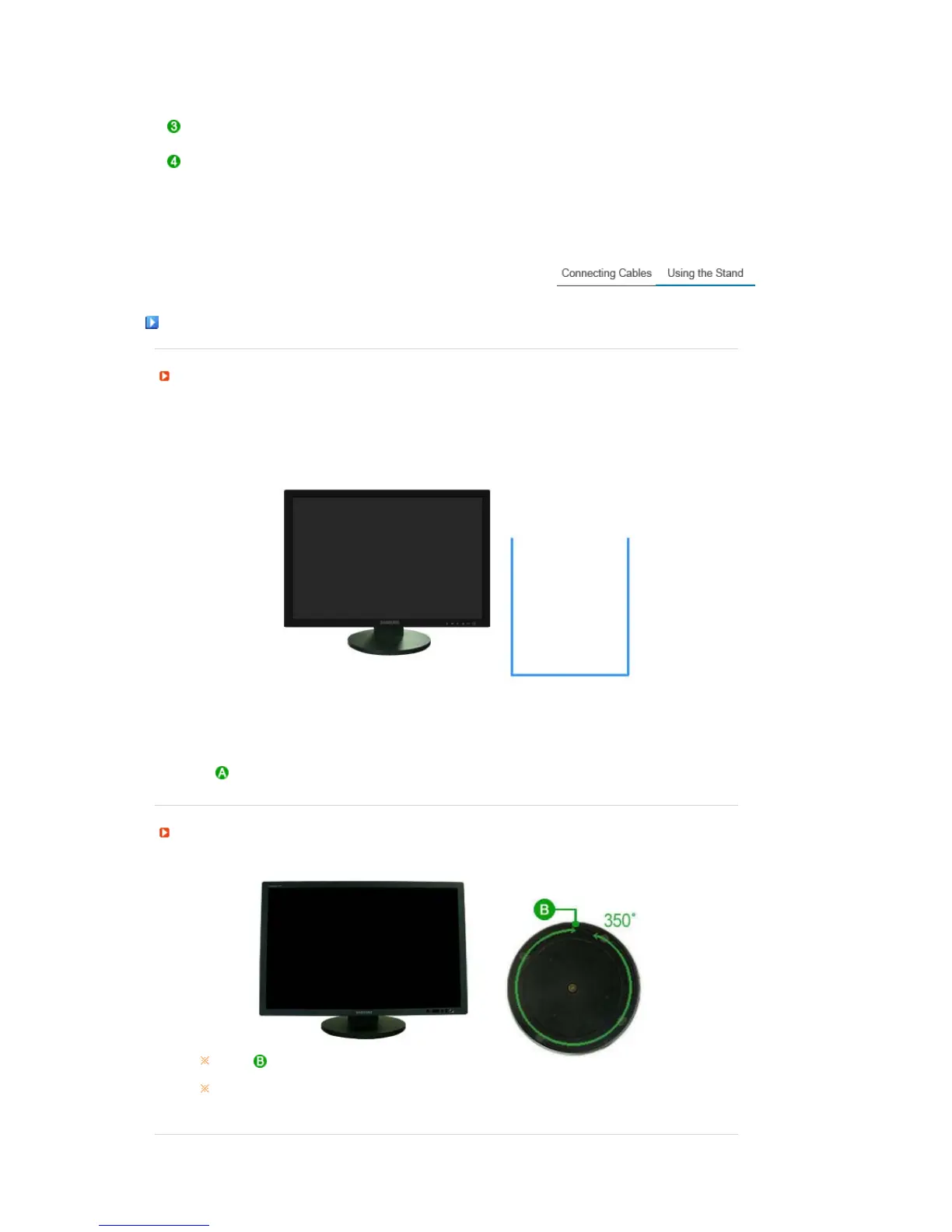 Using ( ),You can swivel the monitor left and right at an angle of 350° to set the monitor