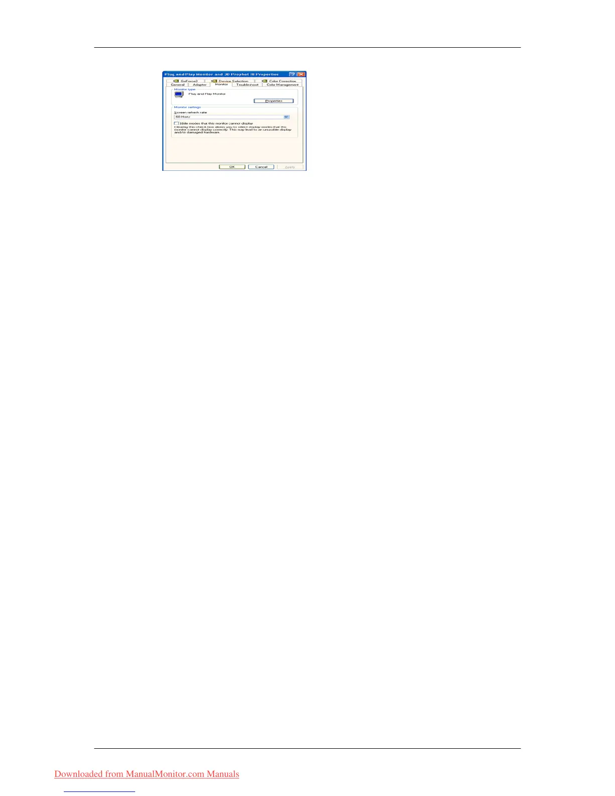 Case1 : If the "Properties" button is inactive, it means your monitor is properly configured.