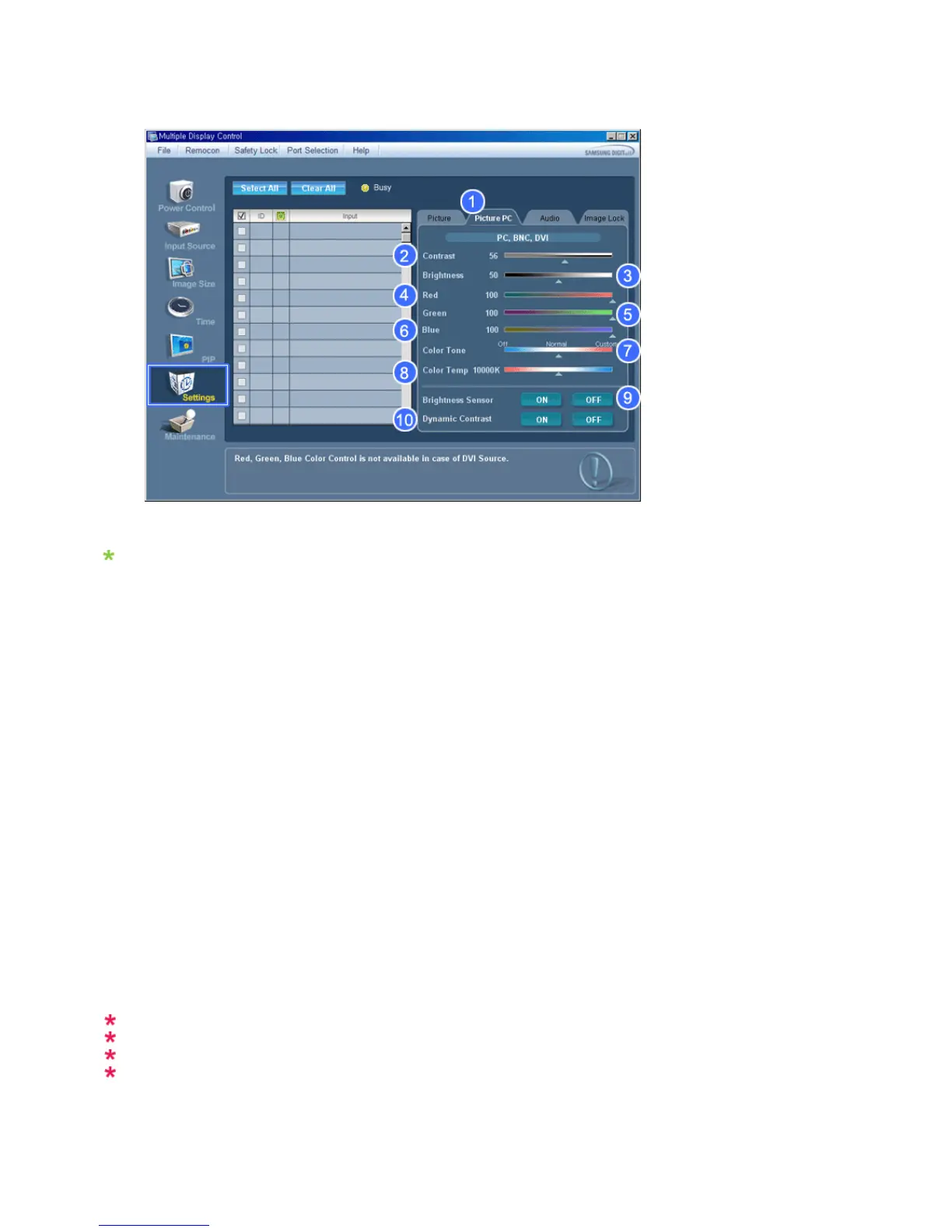 - Available only for PC, BNC, DVI.