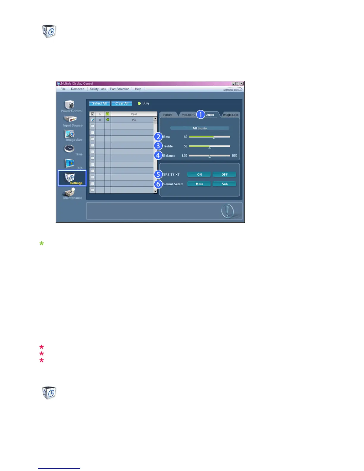 Info Grid shows some basic information necessary to Settings Control. When each function is selected, the set value
