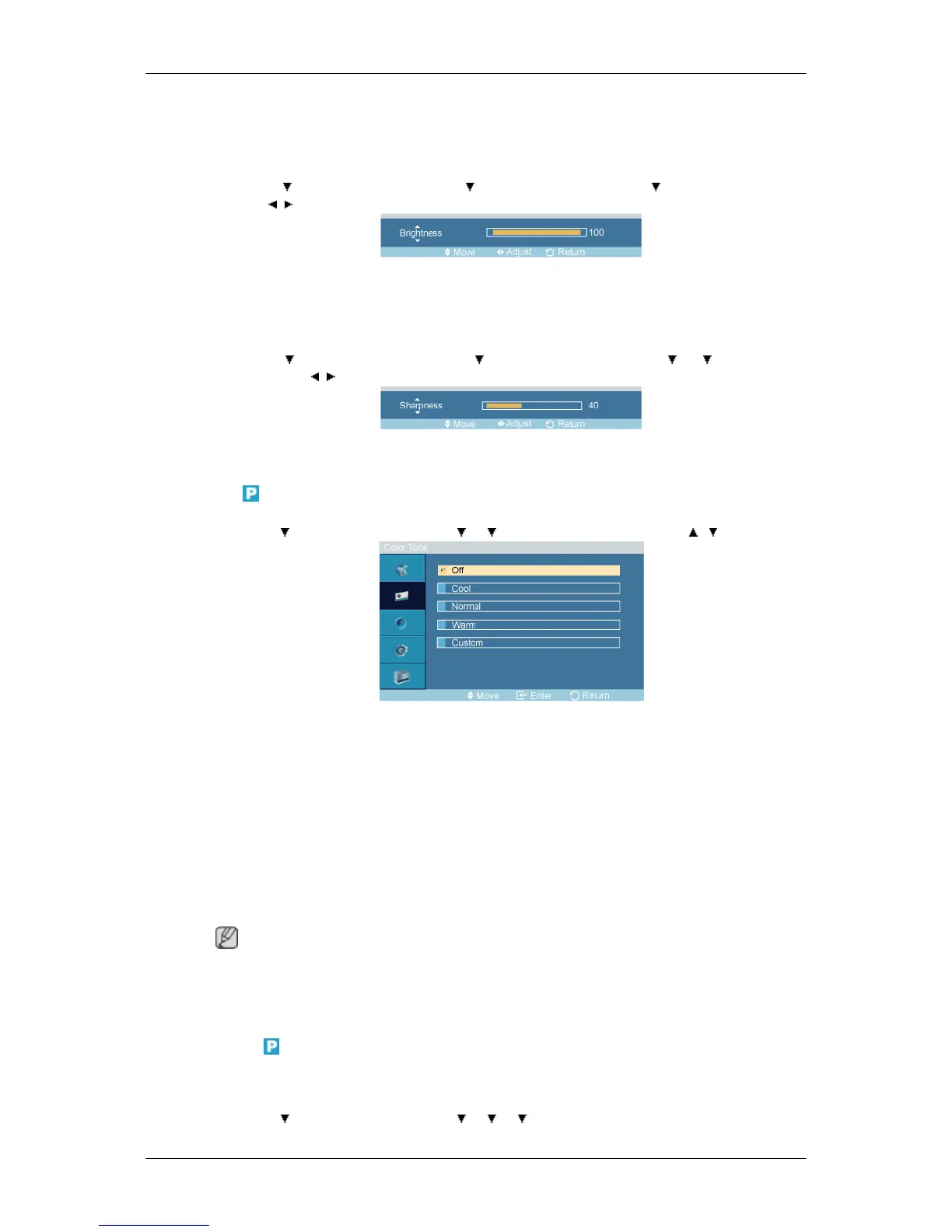 If you set the Color Tone to Cool, Normal, Warm, or Custom, the Color Temp function is disabled.