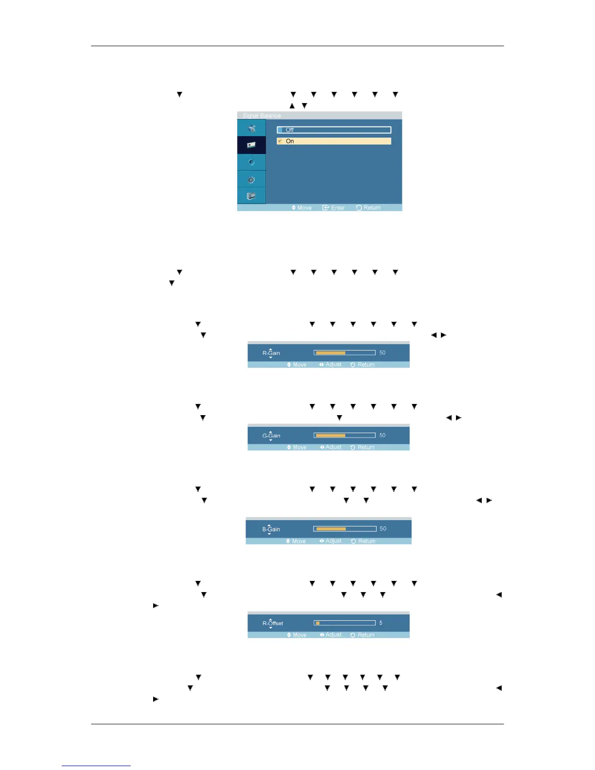 Balance] → → ENTER → [Signal Control] → → → ENTER → [B-Gain] → , →