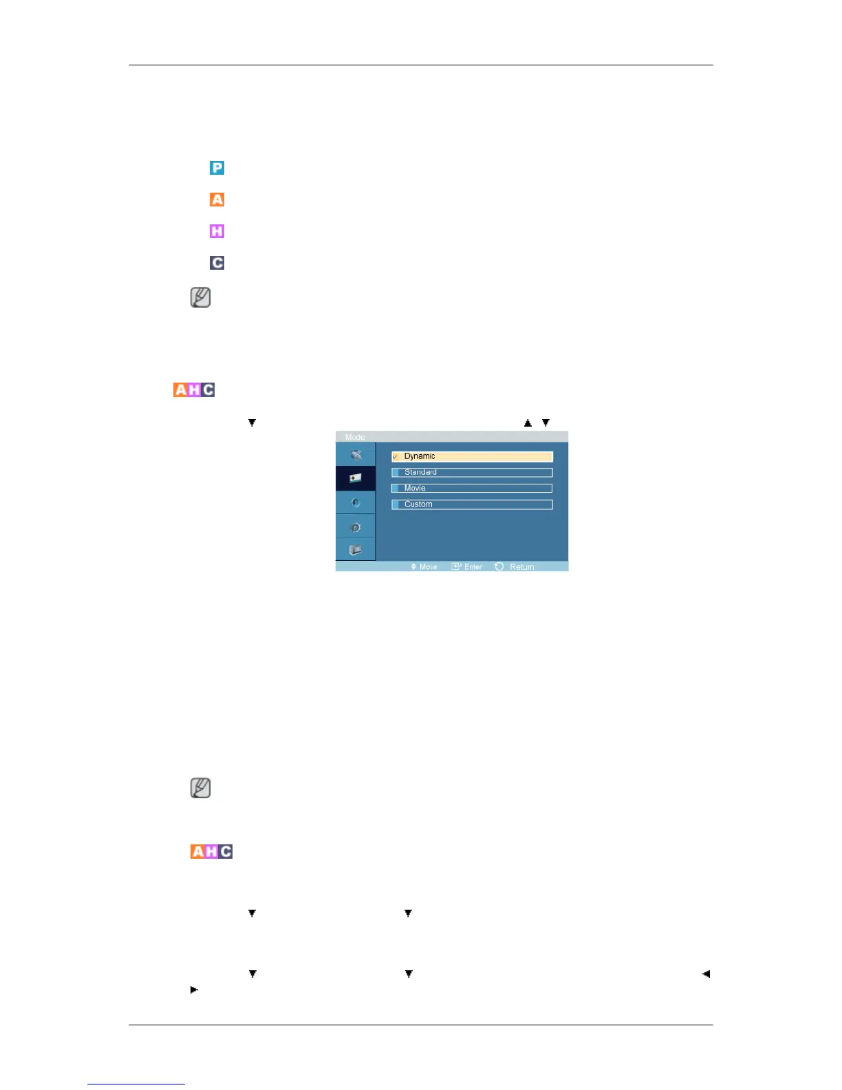 MENU → → ENTER → [Picture] → ENTER → [Mode] → , → ENTER
