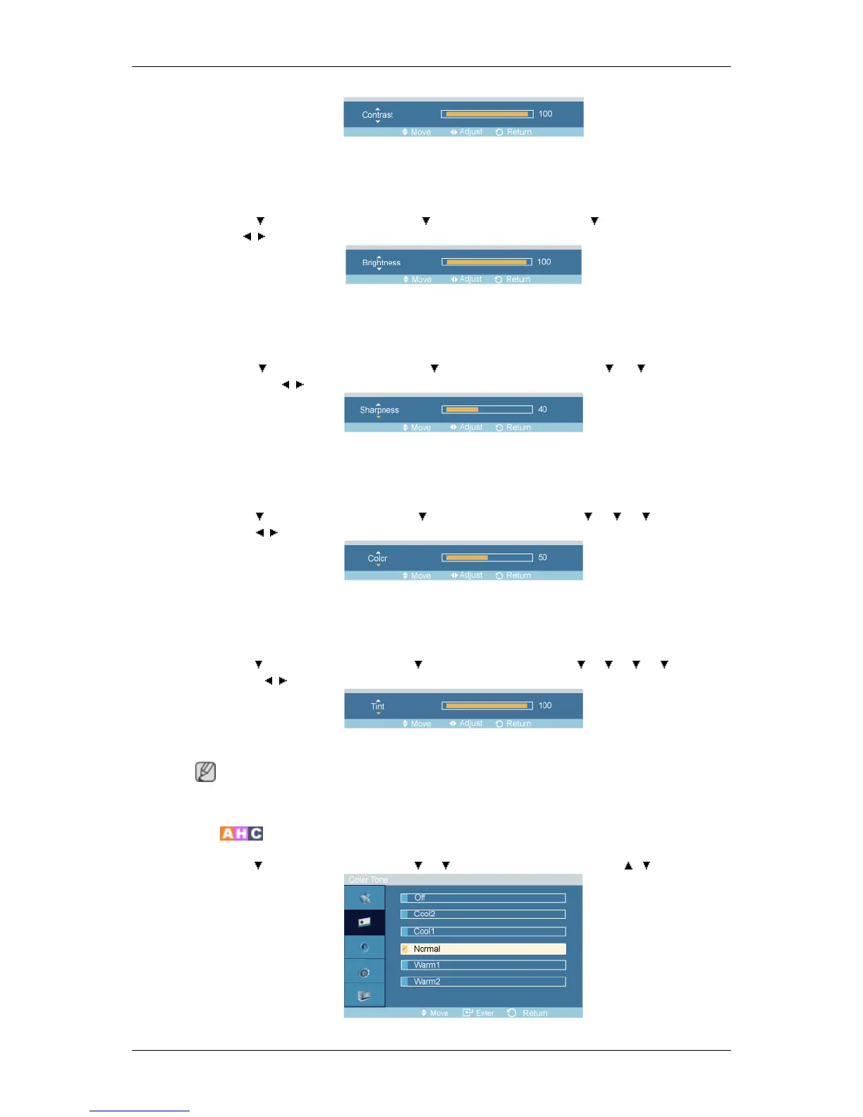 MENU → → ENTER → [Picture] → → → ENTER → [Color Tone] → , → ENTER