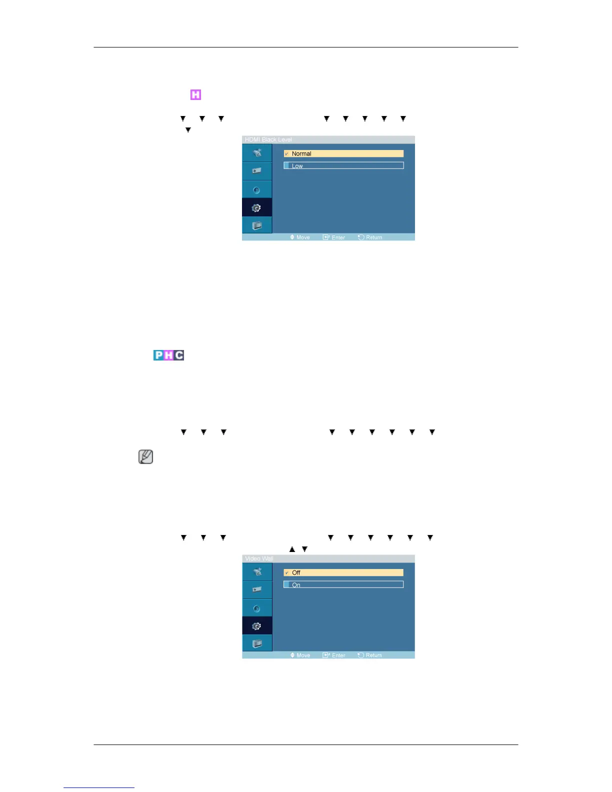 MENU → → → → ENTER → [Setup] → → → → → → ENTER → [HDMI Black