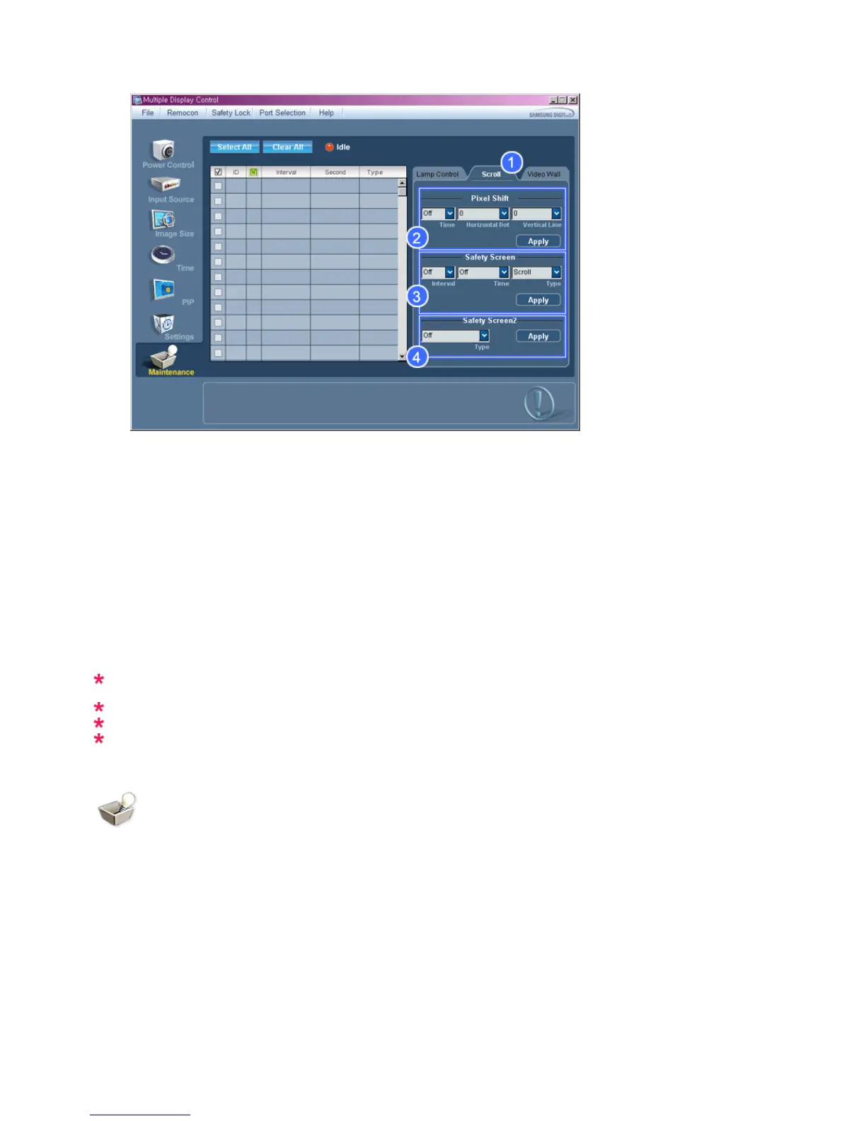 The Maintenance Control feature is available only for the displays whose power status is ON.