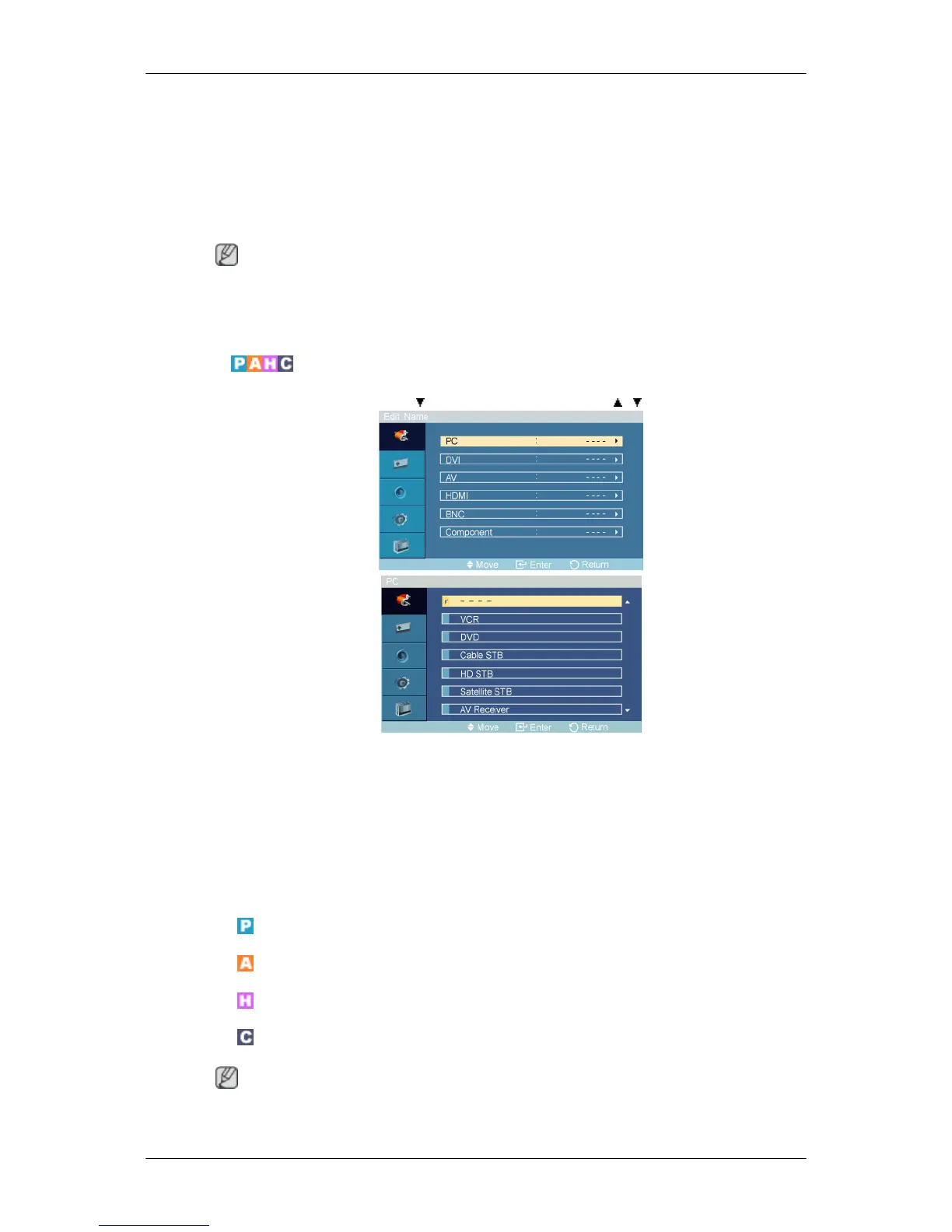 MENU → ENTER → [Input] → → ENTER → [Edit Name] → , → ENTER