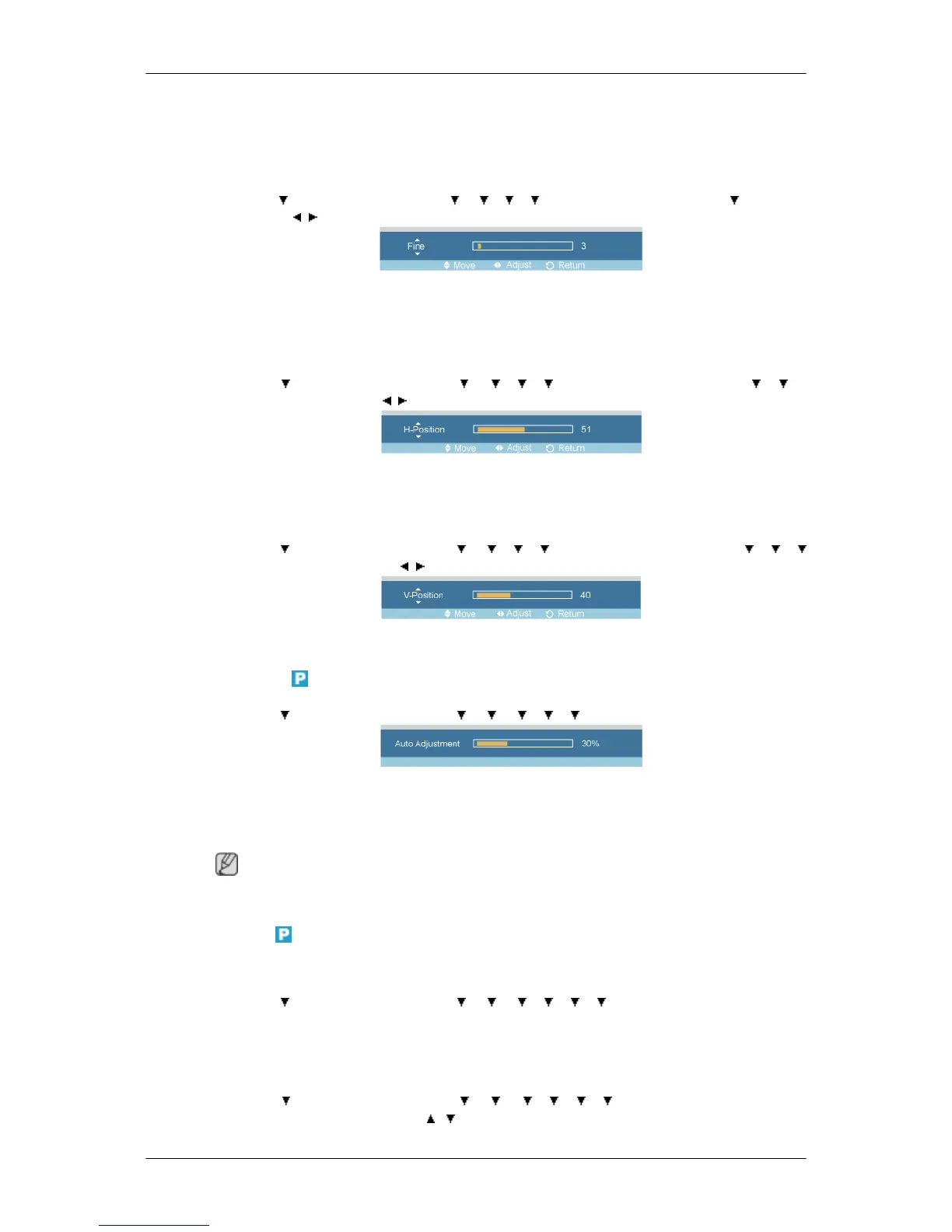 Removes noise such as vertical stripes. Coarse adjustment may move the screen image area. You may