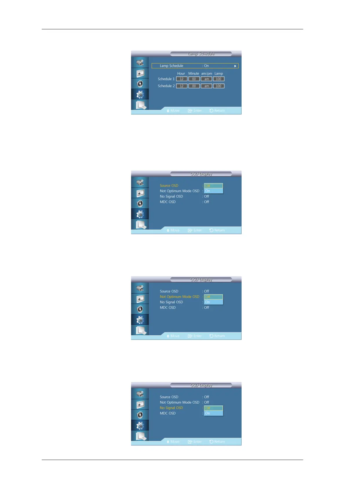 Samsung SYNCMASTER 320MPN-3 - Lamp Schedule; OSD Display; Source OSD; Not Optimum Mode OSD