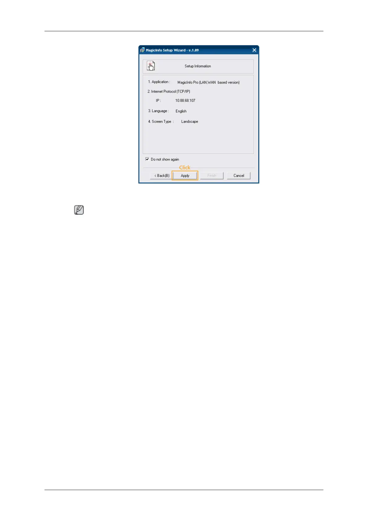 If the MagicInfo icon is not displayed on the notification area, double click the MagicInfo