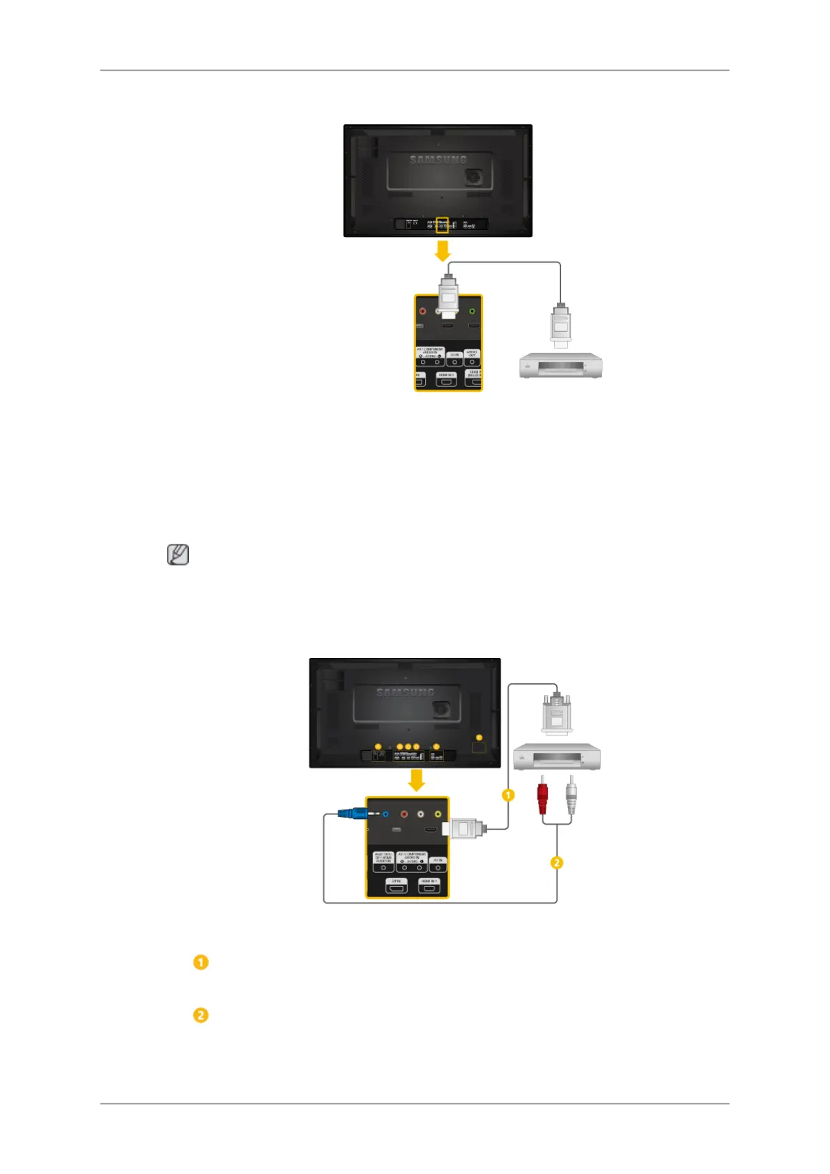 Connect a DVI-HDMI cable to [HDMI IN 2 (MAGICINFO)] or [HDMI IN 1]
