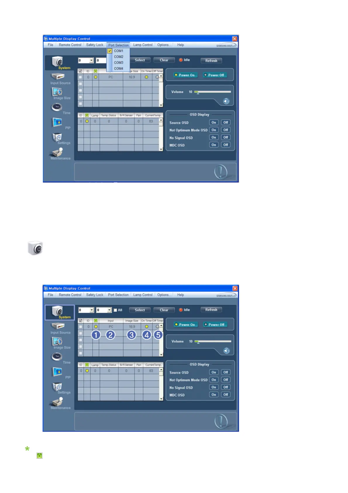 1. The Multiple Display Control is originally set to COM1.