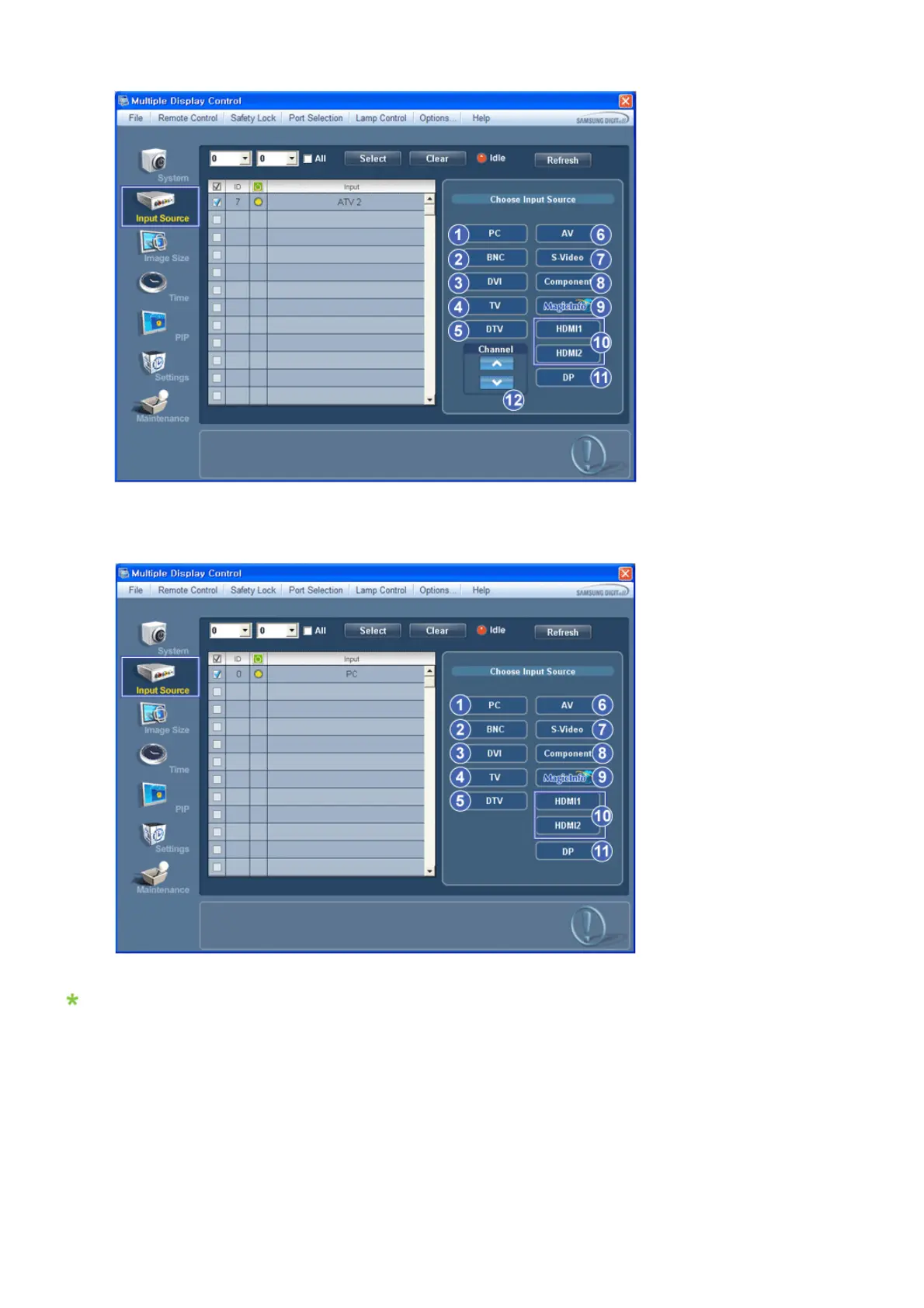 Info Grid shows some basic information necessary to Input Source Control.
