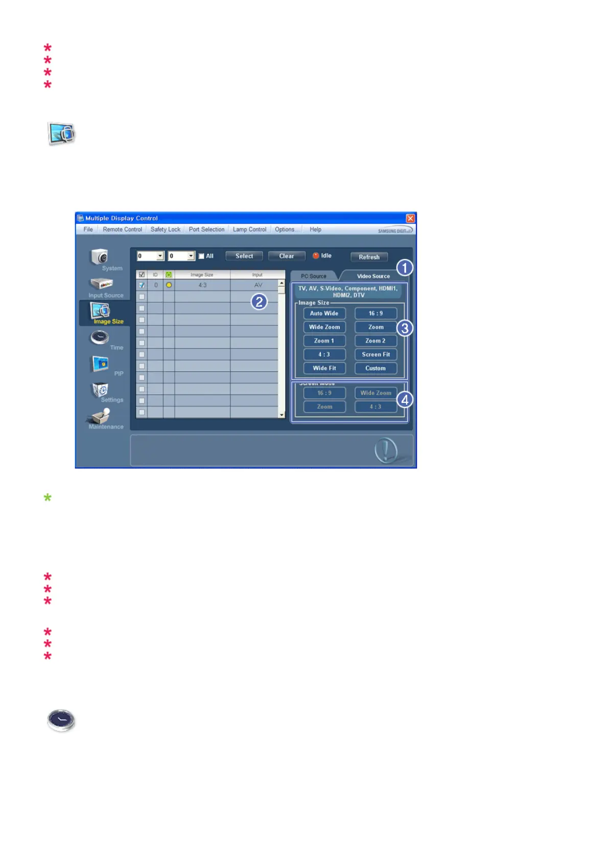 The Image Size Control feature is available only for the displays whose power status is ON.