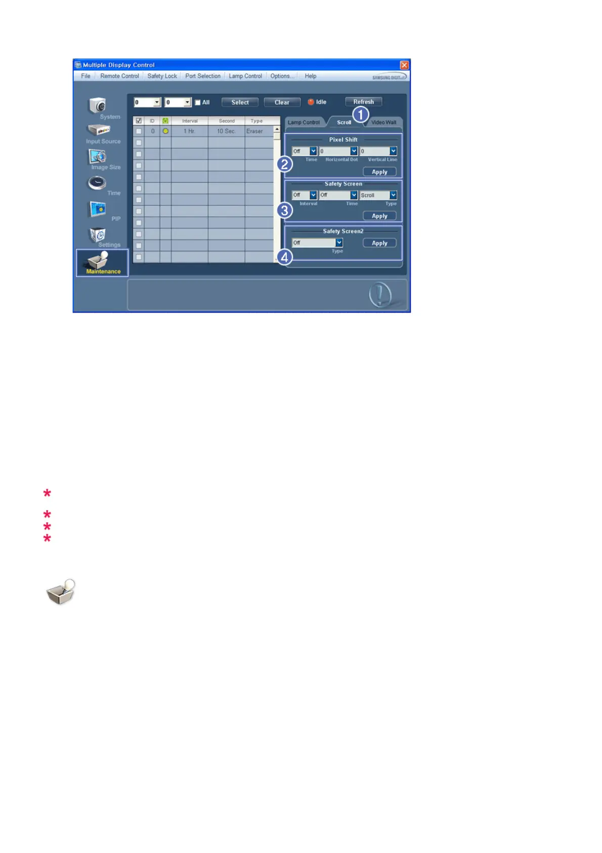 The Maintenance Control feature is available only for the displays whose power status is ON.