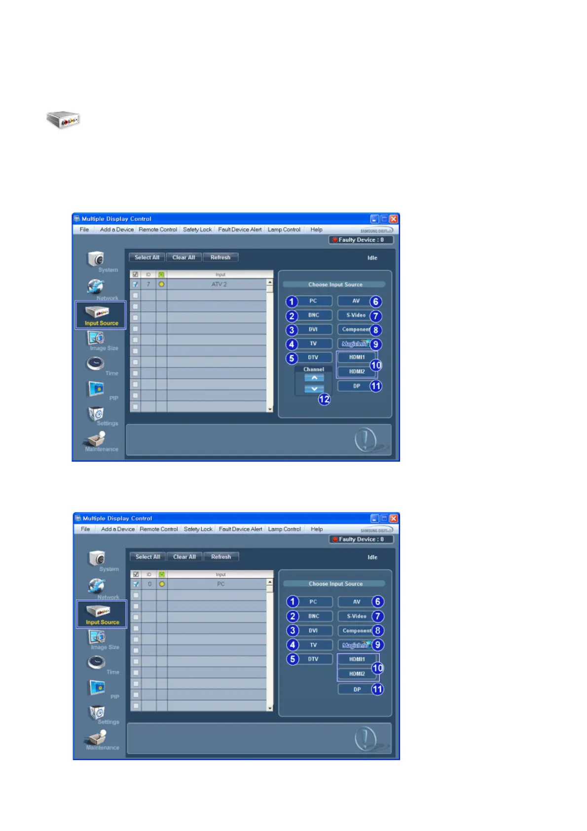 Click Input Source of the main icons and the Input Source control screen appears.