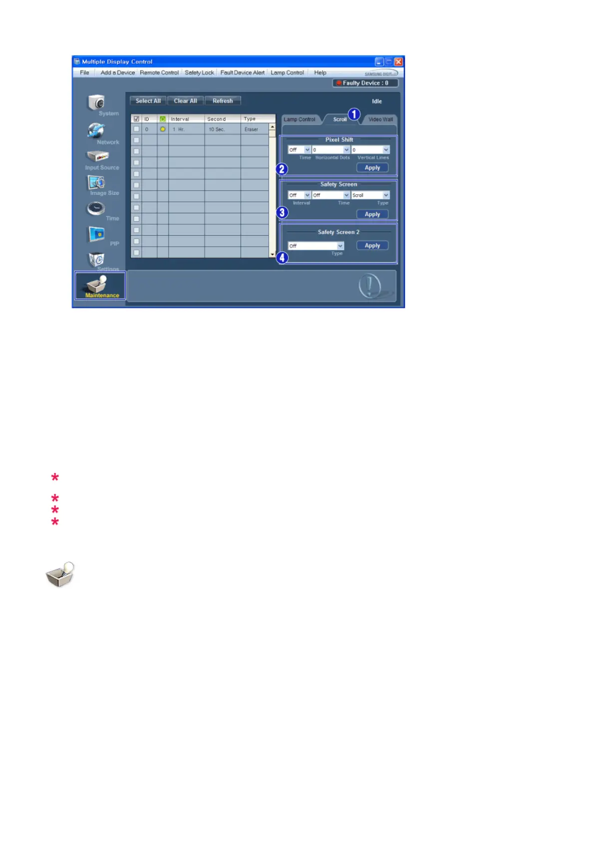 The Maintenance Control feature is available only for the displays whose power status is ON.