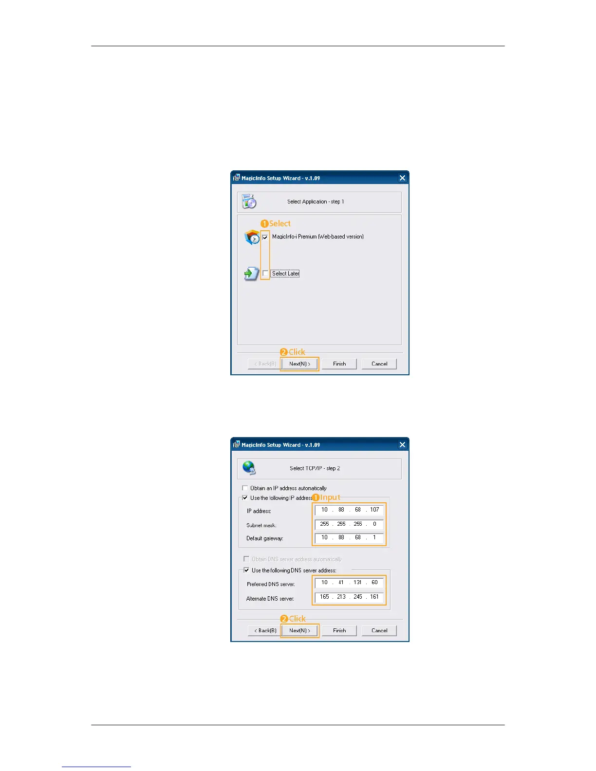 your settings for TCP/IP. You just do that at step 2 of MagicInfo installation.